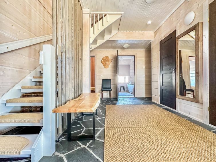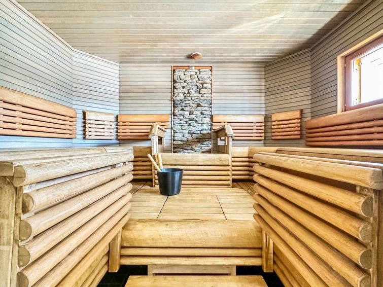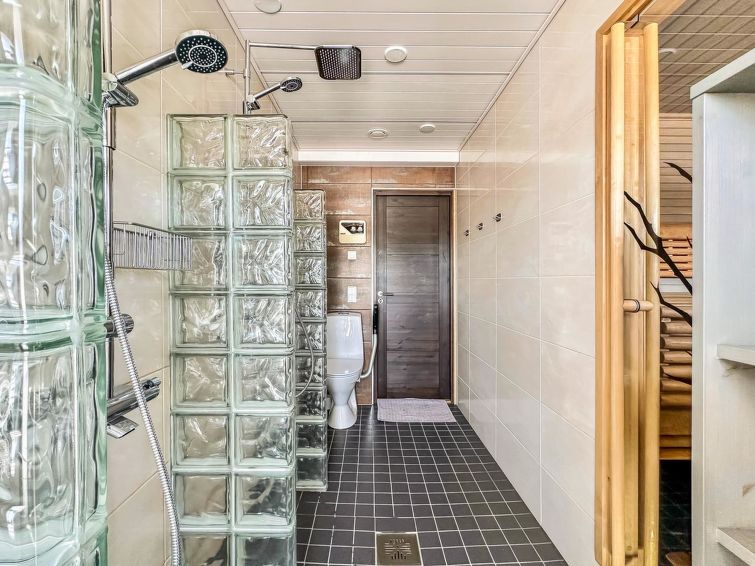 The spacious sauna offers relaxing steam baths. There are two showers and a toilet in the washroom. In addition, there is a separate toilet downstairs and upstairs there is a shower and toilet in the same room.