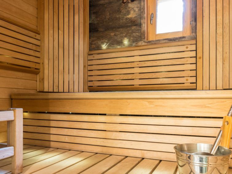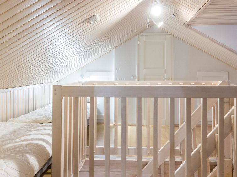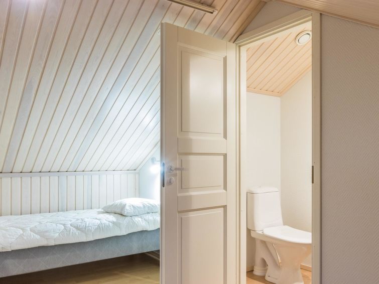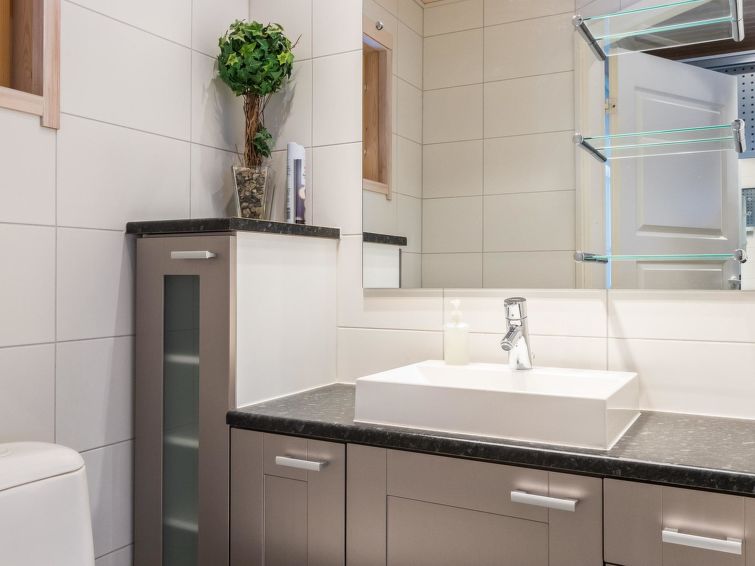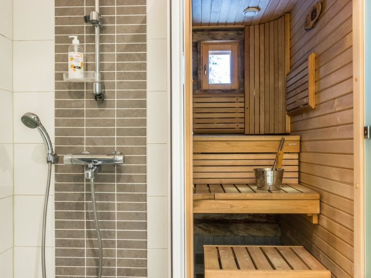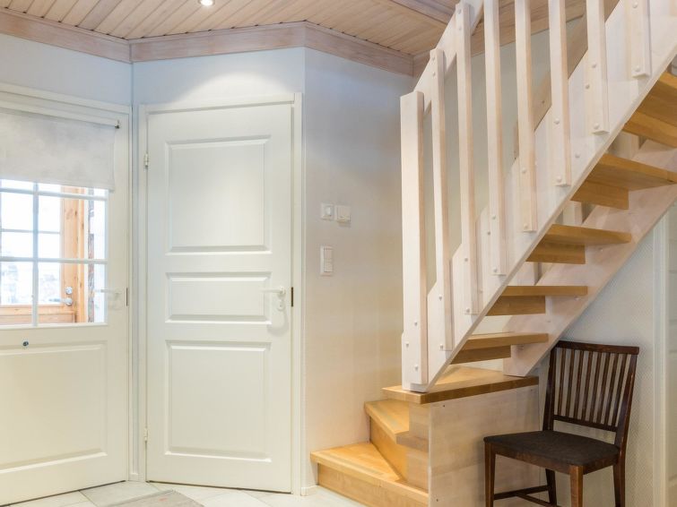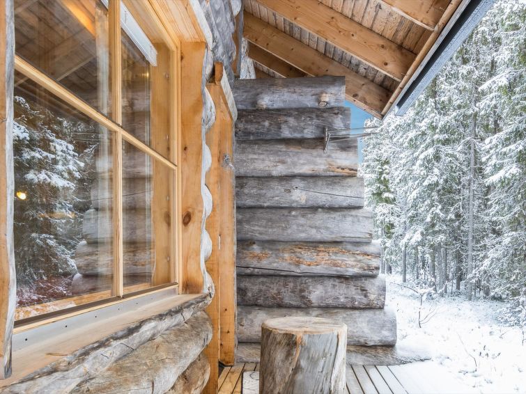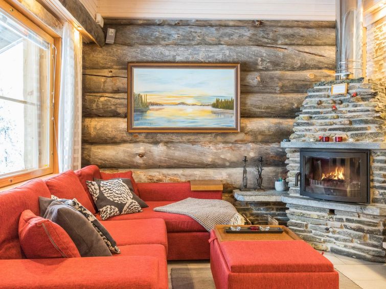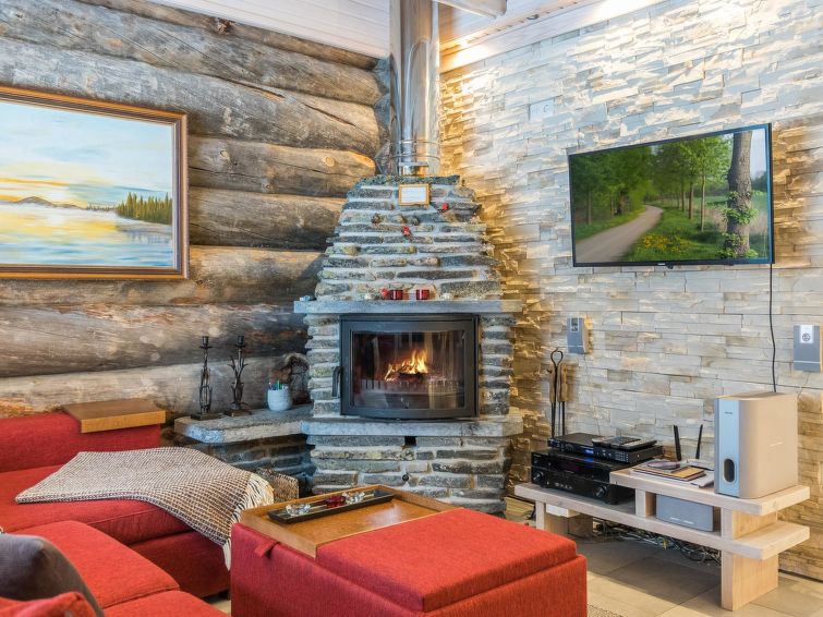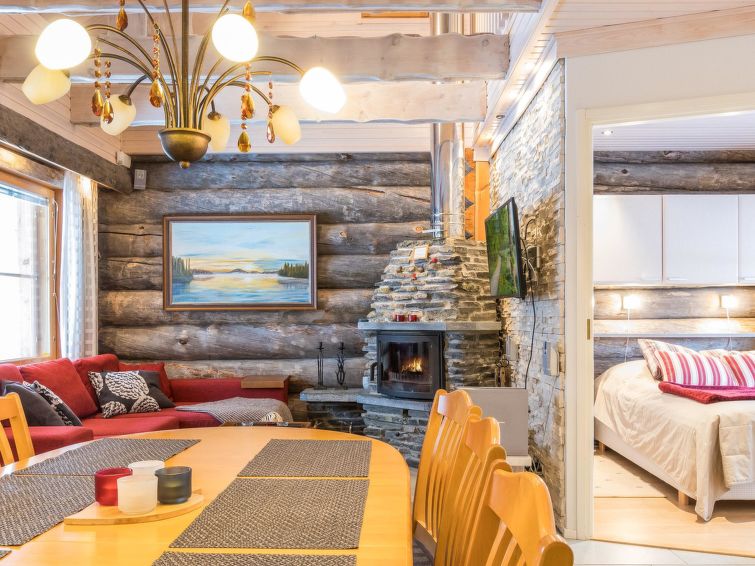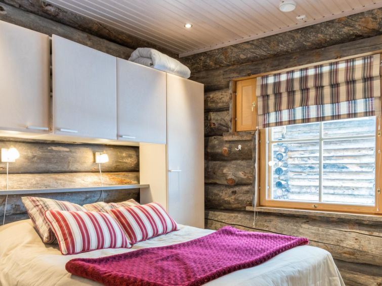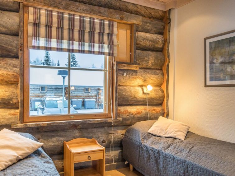 Row house apartment situated 40 km north of Kolari. Combined living room kitchen, 2 bedrooms downstairs - one with doublebed and the other with two seperate beds. In loft (22m2) alcove with two seperate beds and in lofts hall two seperate beds. Sauna, washing room and seperate toilet, toilet also in loft. Wireless internet connection. Skiwaxing room and storage room. Good quality and unique row house apartment made of silver grey kelo wood in Nilivaara area in Äkäslompolo. Apartment is situated near services and ski tracks. No pets allowed. Final cleaning is included in price, linen available on order.
