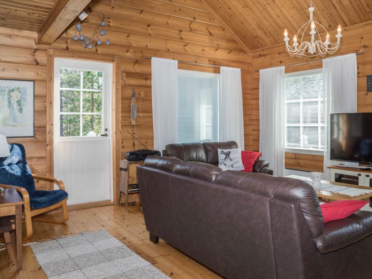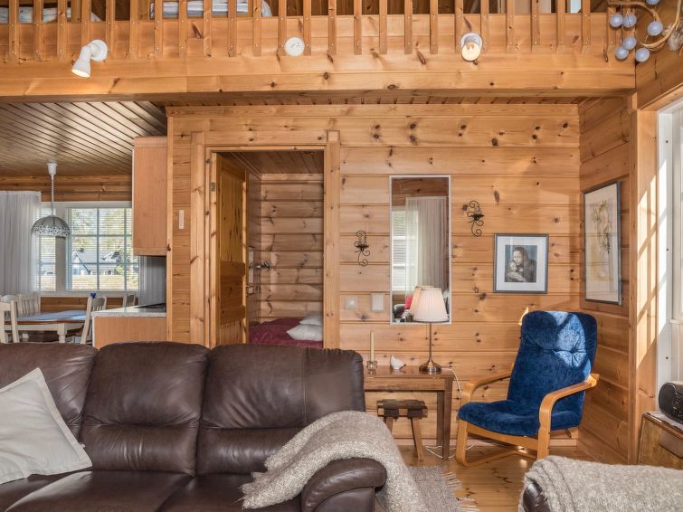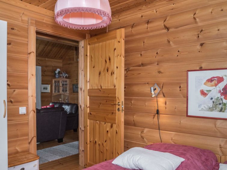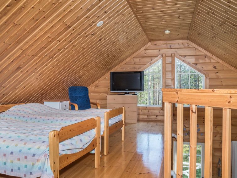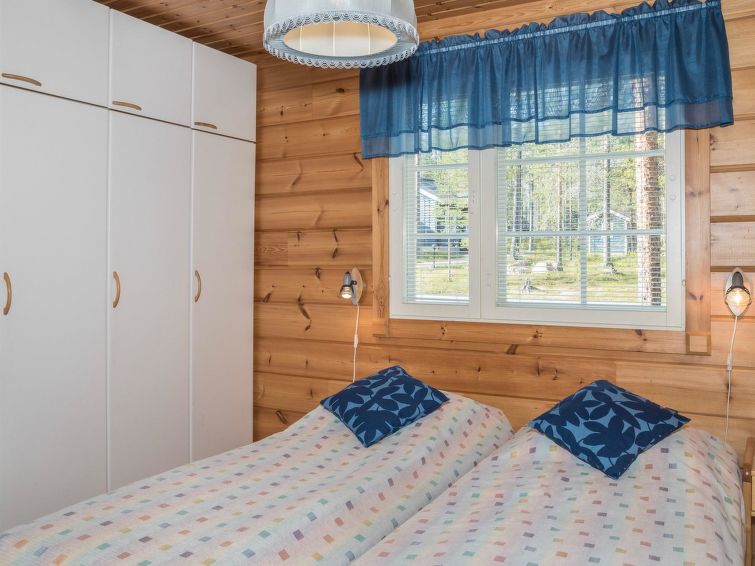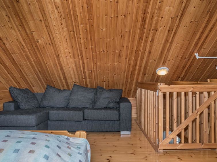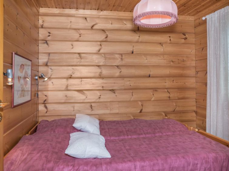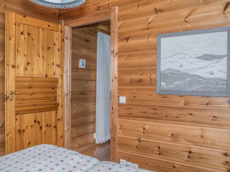 40 km north of Kolari, lake Äkäslompolo 1,5 km, swimming beach 3,5 km. Log cabin 2003. Living room/kitchen, two bedrooms one with 2 separate beds, one with double bed. Loft (20 m²) with 4 separate beds, sauna (electric), bathroom/toilet, separate toilet. Ski maintenance room in the outdoor storage, charcoal grill (the customer brings the charcoal). Wi-fi Well equipped log cabin in the Äkäslompolo village Kaulavaara area. Located in a peaceful and tidy cottage area next to skiing tracks. Pets allowed. Extra charge for pets 50 €/pet, max. 2 pets / booking. If there is two pets the payment is 100 euros. Prices include final cleaning, bed linen are available for rent.