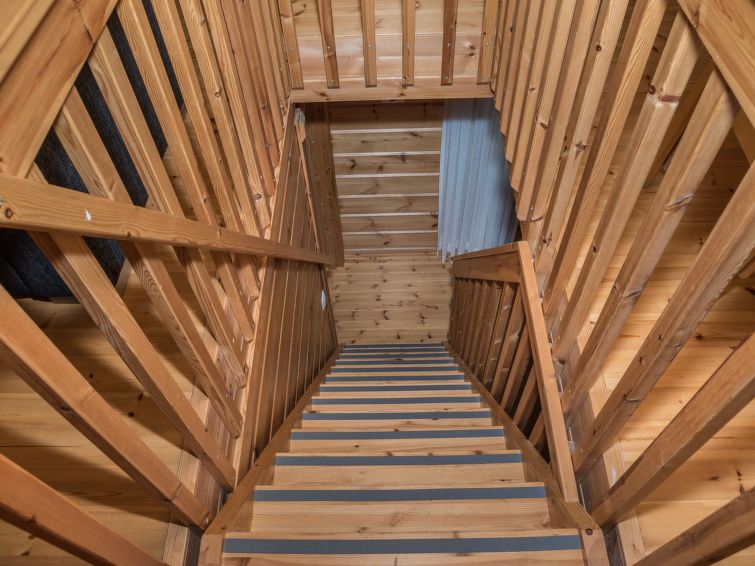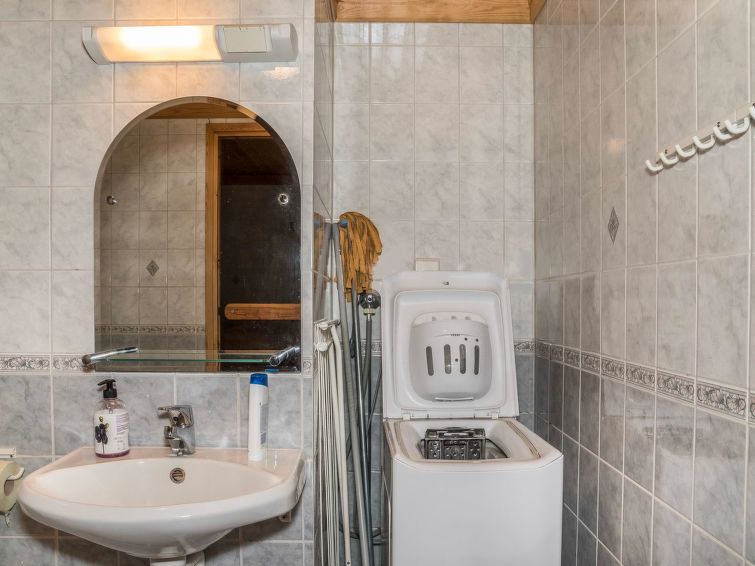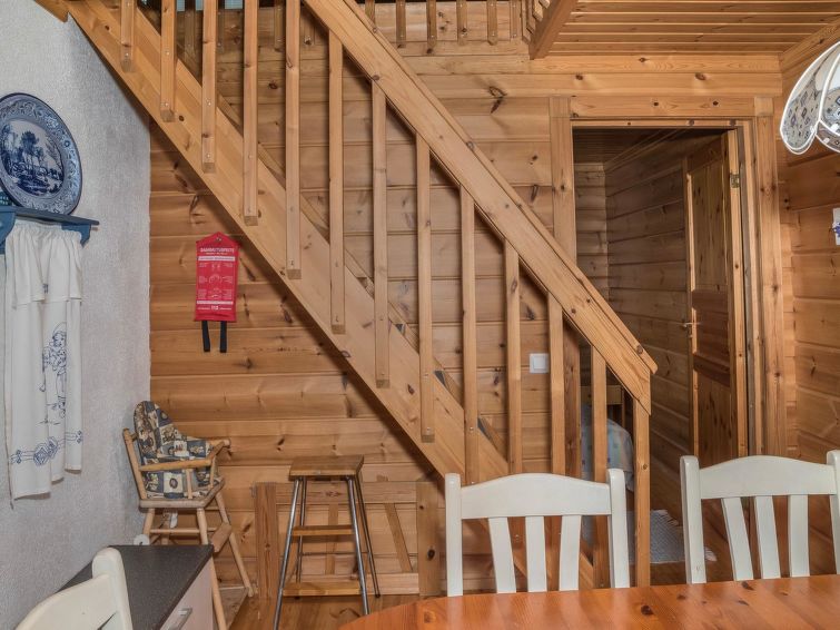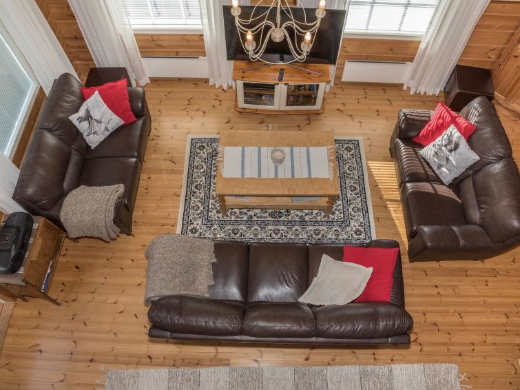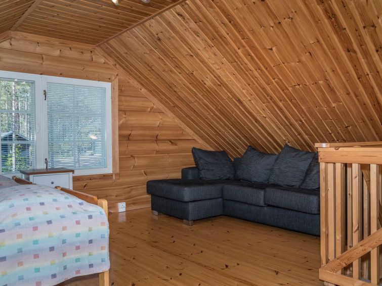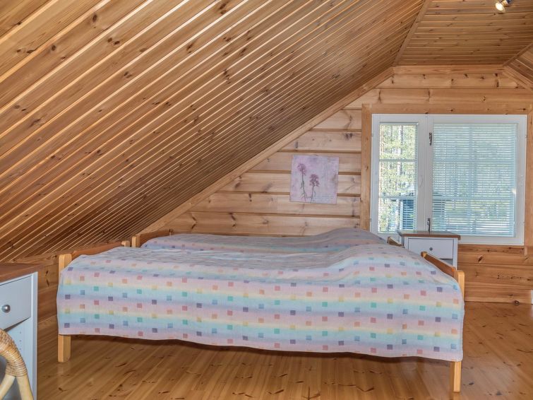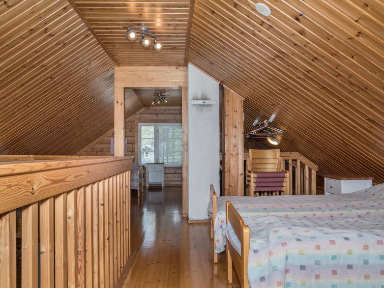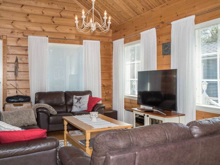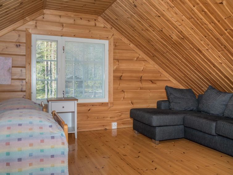 40 km north of Kolari, lake Äkäslompolo 1,5 km, swimming beach 3,5 km. Log cabin 2003. Living room/kitchen, two bedrooms one with 2 separate beds, one with double bed. Loft (20 m²) with 4 separate beds, sauna (electric), bathroom/toilet, separate toilet. Ski maintenance room in the outdoor storage, charcoal grill (the customer brings the charcoal). Wi-fi Well equipped log cabin in the Äkäslompolo village Kaulavaara area. Located in a peaceful and tidy cottage area next to skiing tracks. Pets allowed. Extra charge for pets 50 €/pet, max. 2 pets / booking. If there is two pets the payment is 100 euros. Prices include final cleaning, bed linen are available for rent.