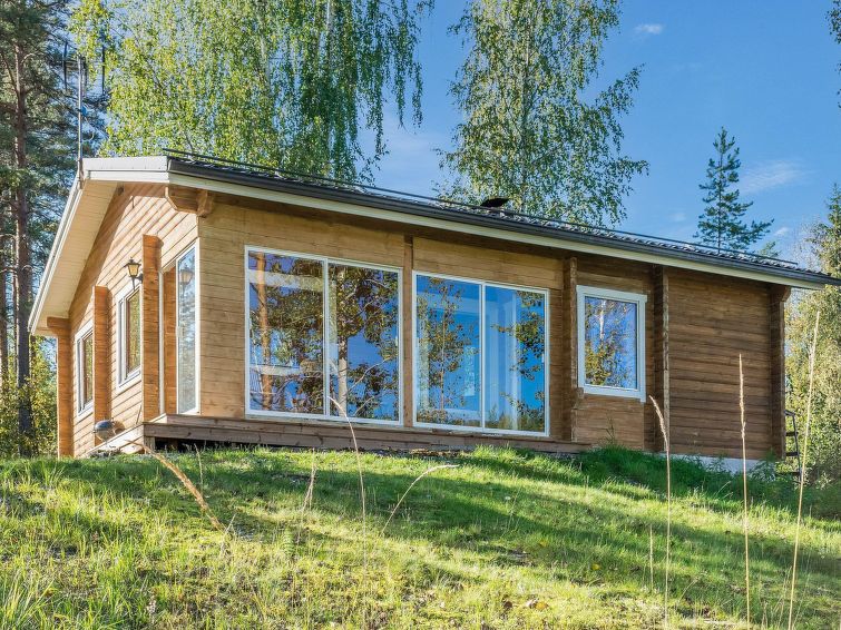 70 km east of Kuopio. Lake Kärenjärvi 15 m (length 3,5 km, breadth 1 km), deep water. Pier, own boat. Log cabin 1983, renovated 2004, completely renovated in 2023, kitchen/living room with 1 extra bed, 2 bedrooms with 2 beds in each, sauna, dressing room, shower room, open veranda.