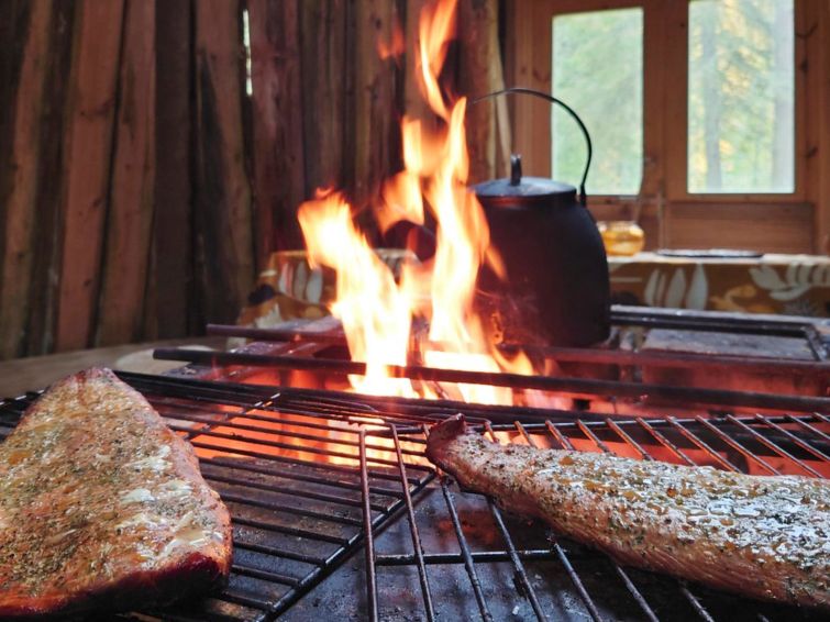 Campfire and charcoal grill (the customer brings the coals), also two barbecue huts in shared use by the cottages in the area.