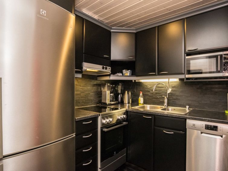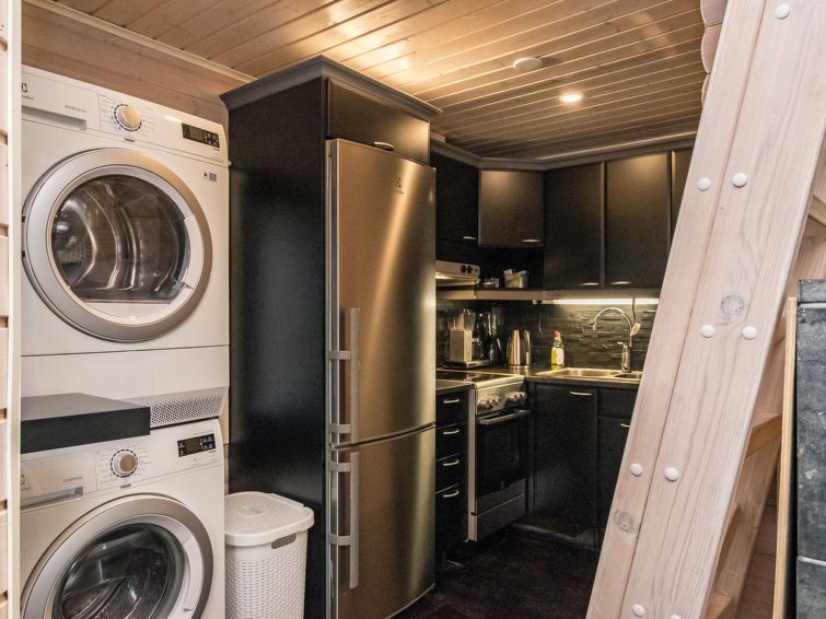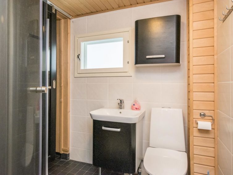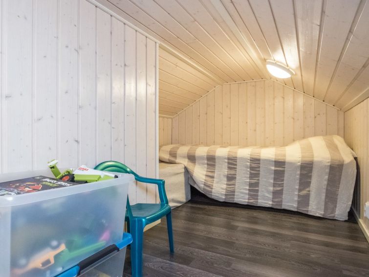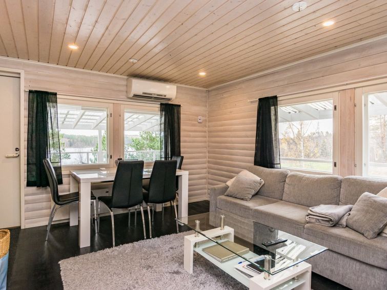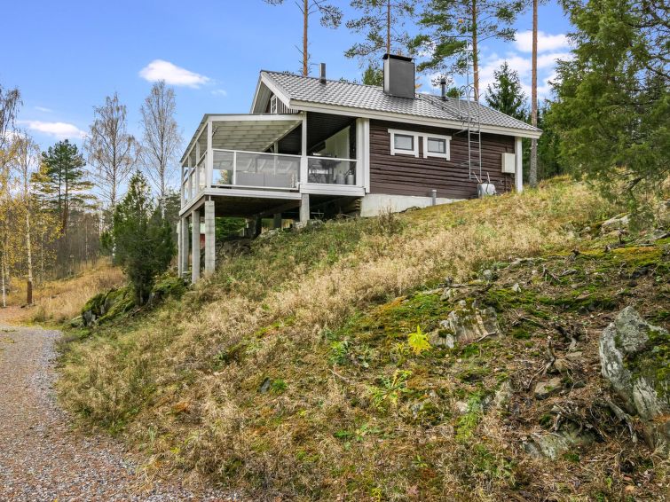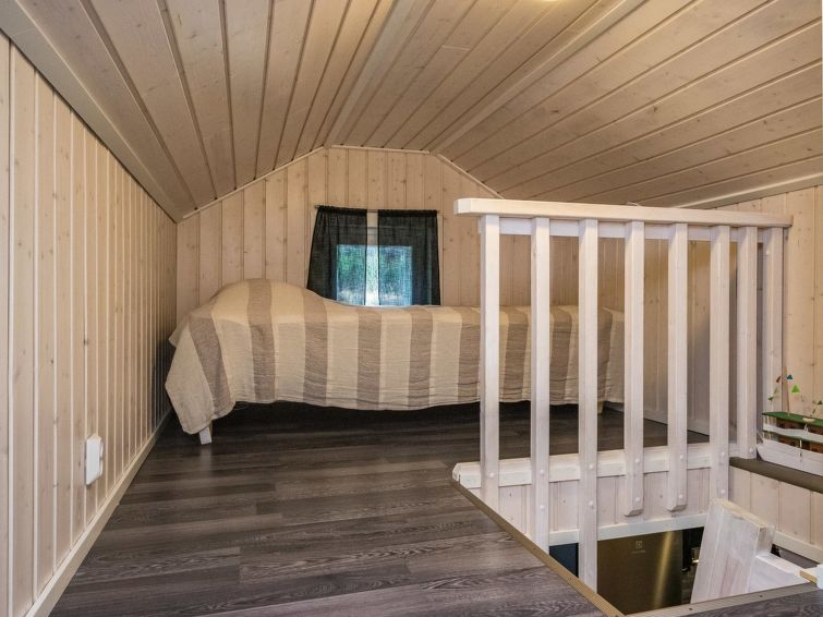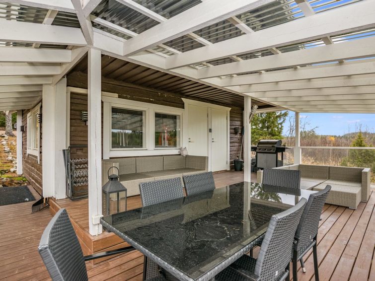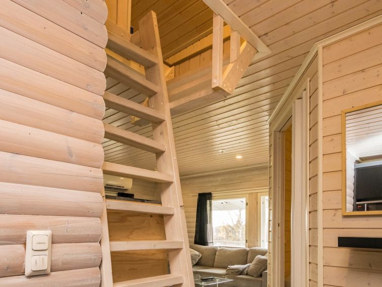 Hand carved log cabin 1950, totally renovated and inner side paneled 2014. Combined kitchen-living room, alcove (5 m ², no window) with double bed, loft with 2 beds, steep and narrow stairs to the loft, sauna, toilet and shower cubicle in the washroom, terrace (50 m²). Cottage in rocky slope, yard in natural state, below field area and 100 m² flat area for example yard games.