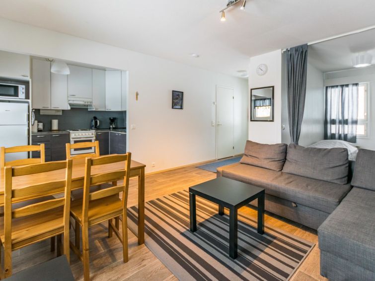 Terraced house located in the vicinity of Paljakka ski centre, 1 km from the downhill slopes/lifts. Living room/kitchen, sauna, bathroom/wc. 2 beds in the alcove, sofa bed in living room.