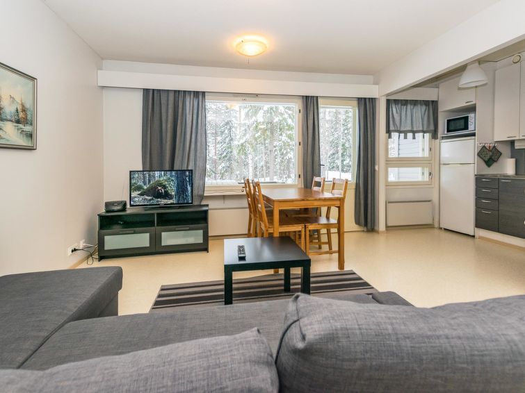 Terraced house located in the vicinity of Paljakka ski centre, 1km from the downhill slopes/lifts. Living room and renovated kitchen (2019) 2 beds in the alcove, sofa bed in living room. Sauna, bathroom/wc. Near to the property beach and fireplace (100m). Own frisbeegolf in back yard. Paljakka: Located in ski resort Paljakka, where are downhill ski trails, ski trails, restaurant. Extra information from www.paljakka.fi. Distance to Lake Rakennusjärvi 100 m. Airport Kajaani 75 km, Oulu 170 km, Helsinki 650 km, railwaystation Kontiomäki 50 km.