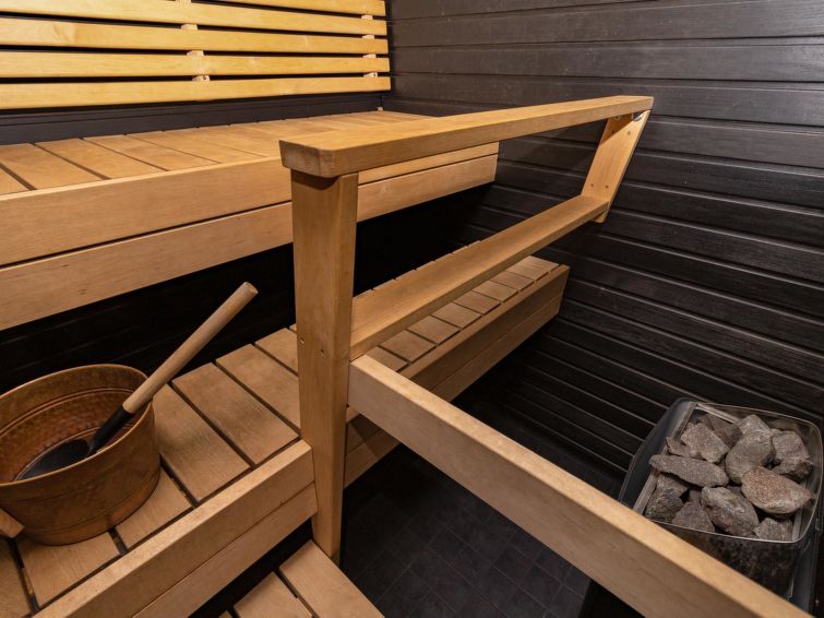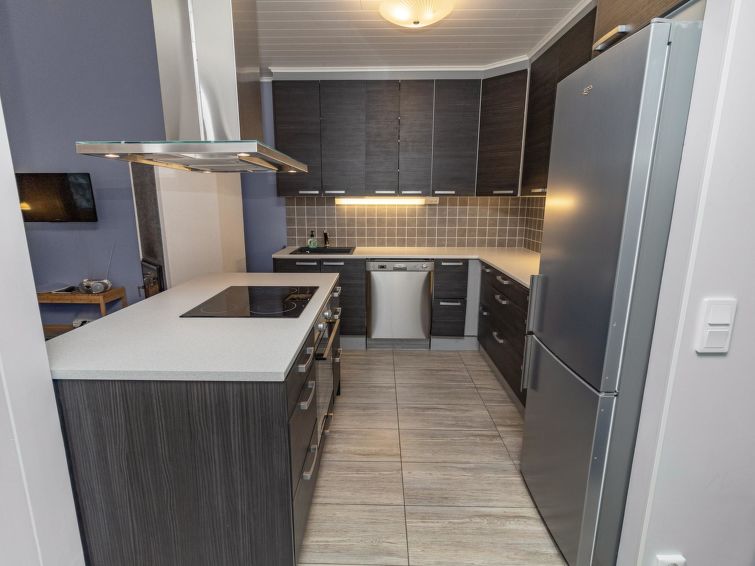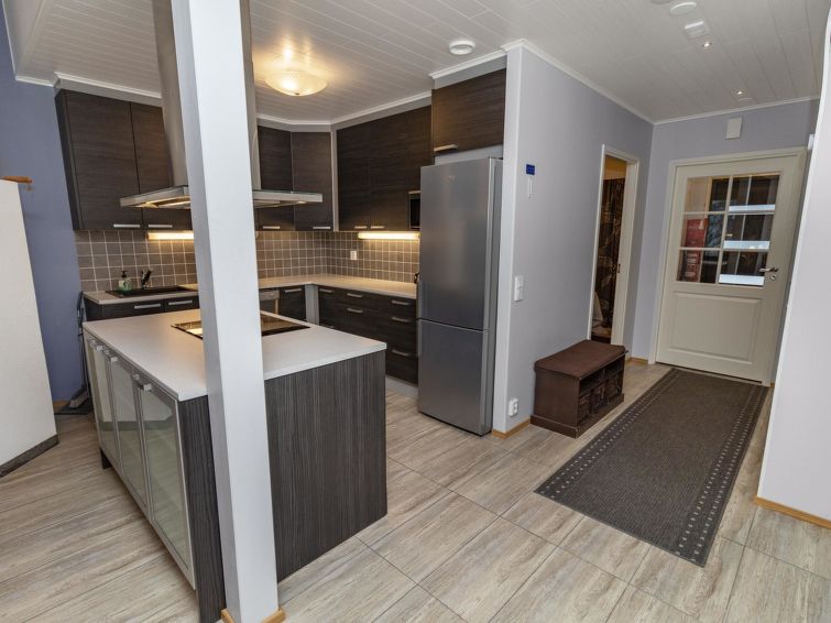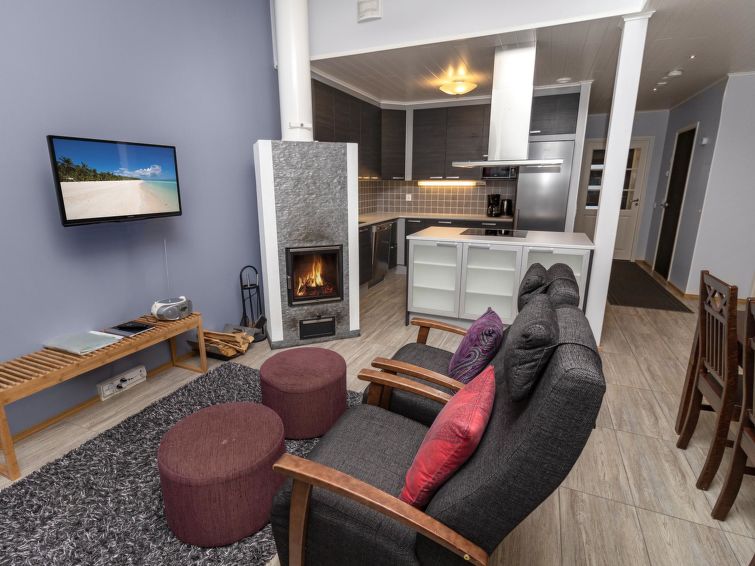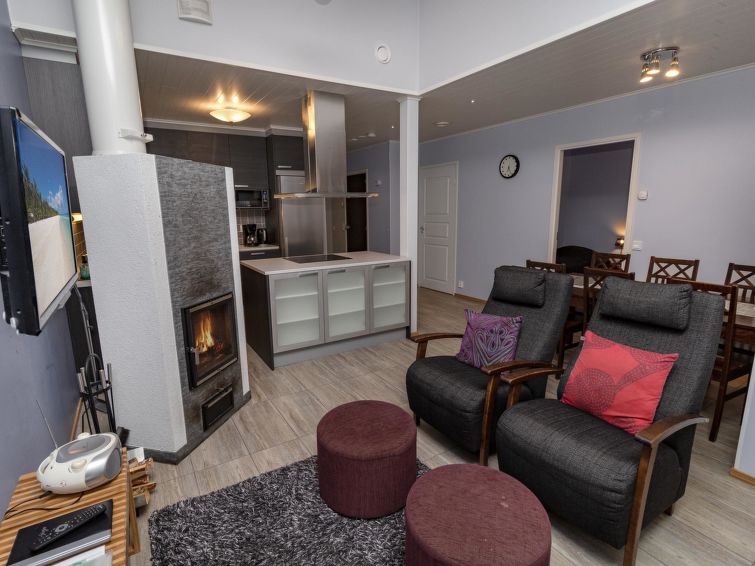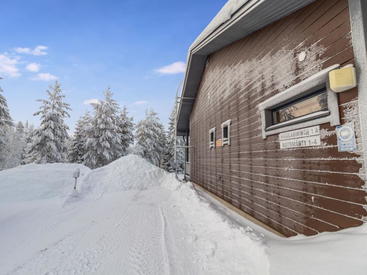 21 km north of Kuusamo, Ruka 6.7 km, Hirsilampi pond 200 m, Pyhäjärvi -lake 300 m. Apartment in terraced house, built in 2013, bedroom 1: double bed, bedroom 2: 2 beds, living room: sofabed for 2, combined kitchen/living room, electric sauna. Comfortable apartment in terraced house middle of the nature.