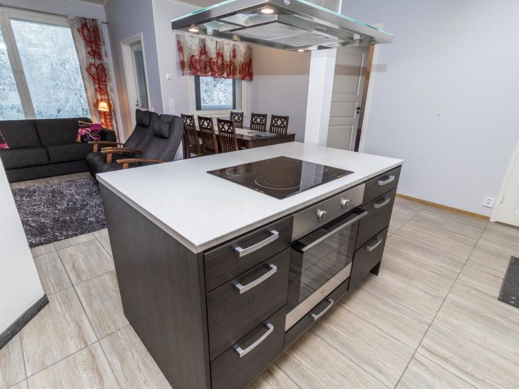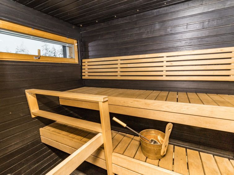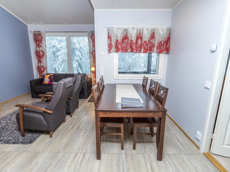 21 km north of Kuusamo, Ruka 6.7 km, Hirsilampi pond 200 m, Pyhäjärvi -lake 300 m. Apartment in terraced house, built in 2013, bedroom 1: double bed, bedroom 2: 2 beds, living room: sofabed for 2, combined kitchen/living room, electric sauna. Comfortable apartment in terraced house middle of the nature.