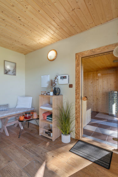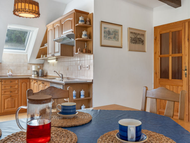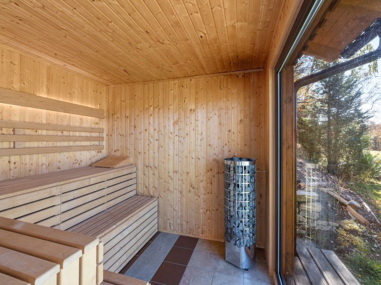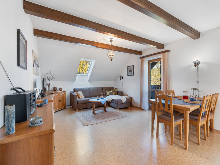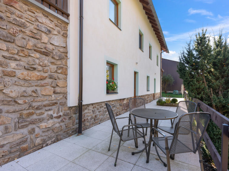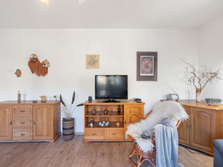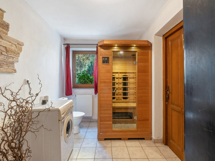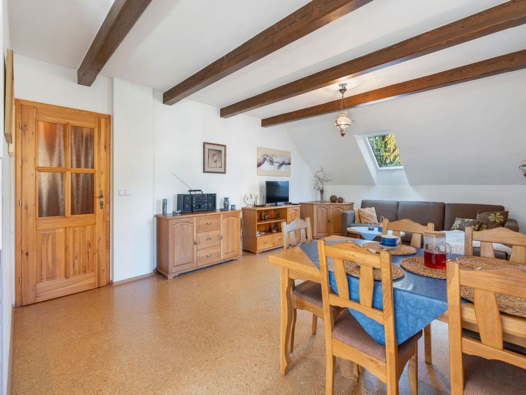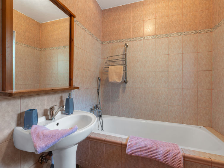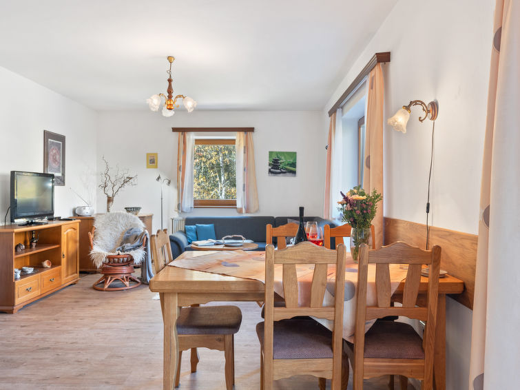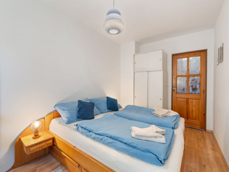 4 rom halvpart av tomannsbolig 120 m2. Meget komfortabelt og vakkert møbler: stue med, 1 dobbel sovesoffa, spisehjørne, TV og radio. Utgang til balkongen. 1 dobblet rom med, 1 klappseng. Kjøkkenkrok (4 kokeplater, stekeovn, vannkoker, mikrobølgeovn, frys). Bad, sep. WC. I underetasje: sep. WC, boblebad, Badstu. øverste etasje: stue med, 1 dobbel sovesoffa og spisehjørne. Utgang til balkongen. 1 dobblet rom med, 1 klappseng. Kjøkkenkrok (4 kokeplater, stekeovn, vannkoker). Dusj, sep. WC. Oppvarming. 2 balkonger. Meget vakker panoramautsikt av landskapet. Fasiliteter: vaskemaskin, badstu, høy barnestol barneseng. Internett (trådløs LAN [WLAN], gratis). Vennligst merk: velegnet for familier. Røykfritt hus. Egen inngang.
