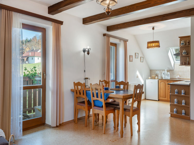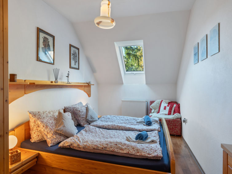 Kralovice 8 km fra Prachatice: Meget fin dobbelthus "Kralovice", med 2 etasjer, bygget i 2002. I området, i en roligt, solrikt posisjon, 700 m fra innsjø. Privat: tomt 600 m2 med plen, dam. Grill, grillhus, lekeplass (huske). I huset: trådløst LAN [WLAN], badstu, boblebad (ekstra). Parkering (for 2 biler) ved hbrukt. Butikk 4 km, daglivarehandel 4 km, supermarked 10 km, restaurant 6 km, café 8 km, bussholdeplass "Nebahovy, Šandův mlýn" 1.8 km, togstasjon "Prachatice" 9 km, innendørs pool 10 km, naturlig svømmedam 700 m. Sporthavn 50 km, seileskole 50 km, tennis 10 km, tennisklubb 10 km, idrettsenter 10 km, turstier fra hbrukt 200 m, sykkelvei 3 km, skiheis 16 km, stolheis 48 km, skibakker 16 km, langrensløype 16 km, sportsfiske 700 m. Attraksjoner i nærheten: Prachatice 10 km, Husinec 16 km, Netolice, archeopark 18 km, zámek Kratochvíle 21 km, zámek Hluboká nad Vltavou, Český Krumlov, České Budějovice 40 km. Velkjente skiområder: Libín 16 km, Zadov-Churáňov 48 km. Velkjente innsjøer: Lipno 50 km. Turstier Boubínský prales, Šumava 30 km. Grupper med tenåringer- bare ved forespørsel.