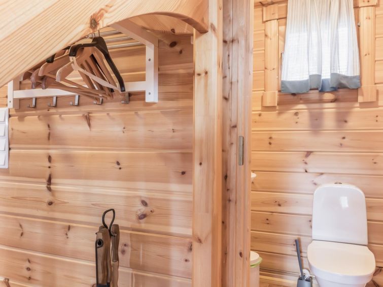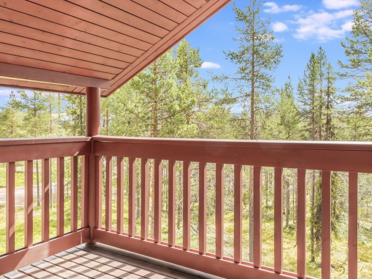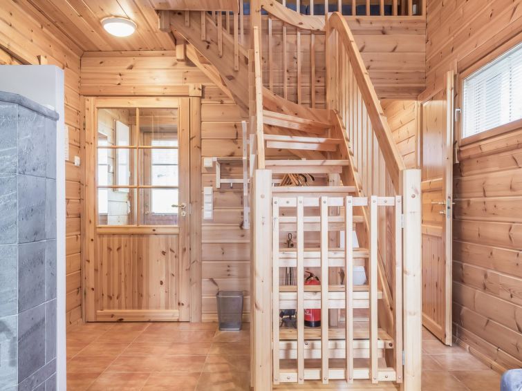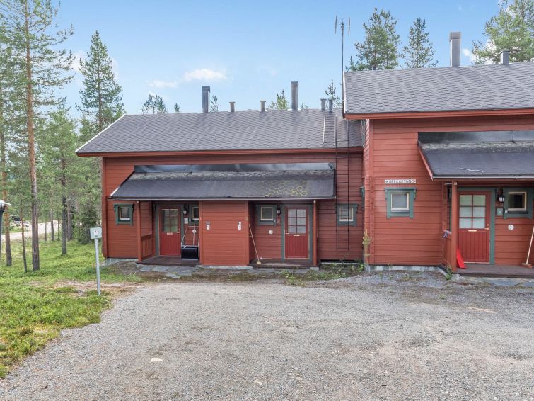 40 km north of Kolari, lake Äkäslompolo 1,5 km, lake Pikku-Kaupinjärvi 500 m, lake Iso-Kaupinjärvi 1,2 km, swimming beach 3 km. Log rowhouse apartment 50 m² + upstairs 12 m² , built 2005. IN downstairs livingroom/kitchen,sauna (electric), shower, separate toilet. In upstairs one bedroom with a double bed, lobby with two separate beds and two easy-chairs as extra beds.