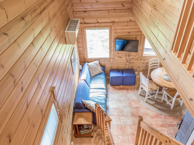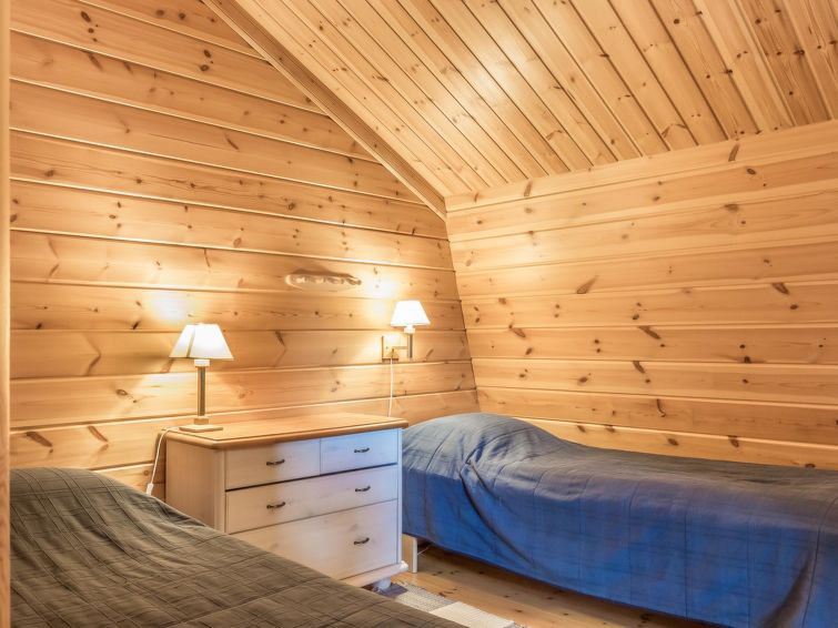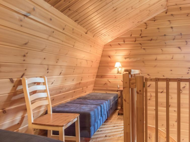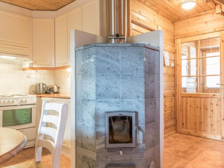 40 km north of Kolari, lake Äkäslompolo 1,5 km, lake Pikku-Kaupinjärvi 500 m, lake Iso-Kaupinjärvi 1,2 km, swimming beach 3 km. Log rowhouse apartment 50 m2 + upstairs 12 m2 , built 2005. IN downstairs livingroom/kitchen,sauna (electric), shower, separate toilet. In upstairs one bedroom with a double bed, lobby with two separate beds and two easy-chairs as extra beds. Log rowhouse apartment in the Äkäslompolo village kaupinjärvi area. Located in a peaceful cottage area with a great view of the fells. No pets allowed. Final cleaning will be always added to bookings, bedlinen available for rent.