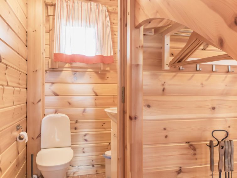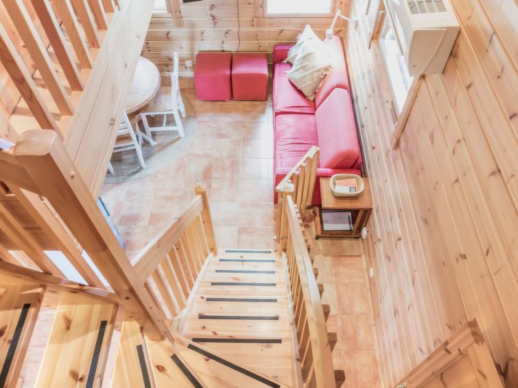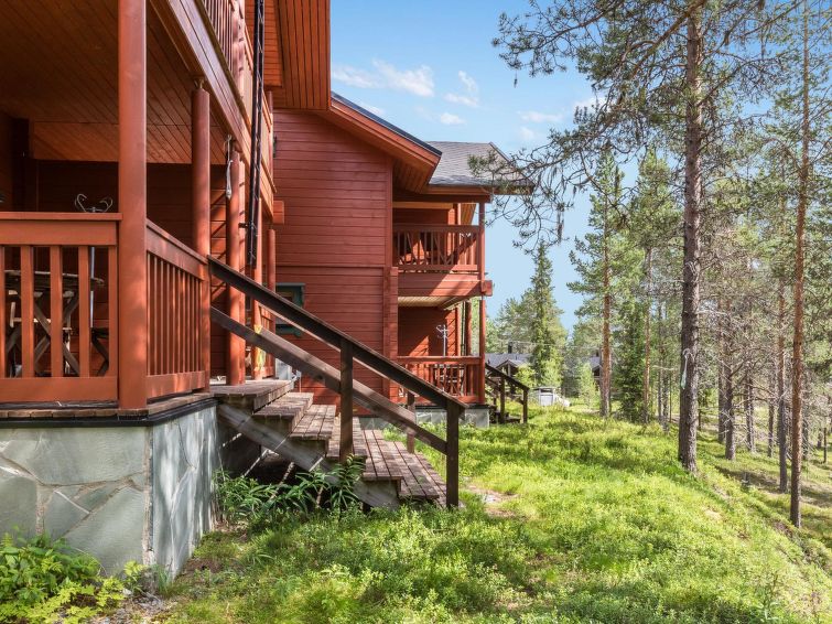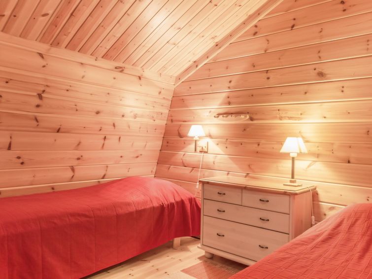 40 km north of Kolari, lake Äkäslompolo 1,5 km, lake Pikku-Kaupinjärvi 500 m, lake Iso-Kaupinjärvi 1,2 km, swimming beach 3 km. Log rowhouse apartment 50 m2 + upstairs 12 m2 , built 2005. IN downstairs livingroom/kitchen,sauna (electric), shower, separate toilet. In upstairs one bedroom with a double bed, lobby with two separate beds and two easy-chairs as extra beds. Log rowhouse apartment in the Äkäslompolo village kaupinjärvi area. Located in a peaceful cottage area with a great view of the fells. Pets are allowed. Final cleaning will be always added bedlinen available for rent.