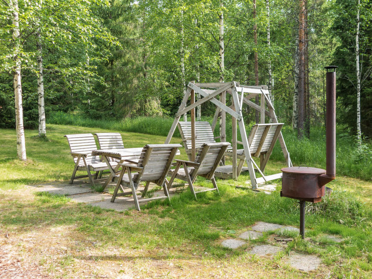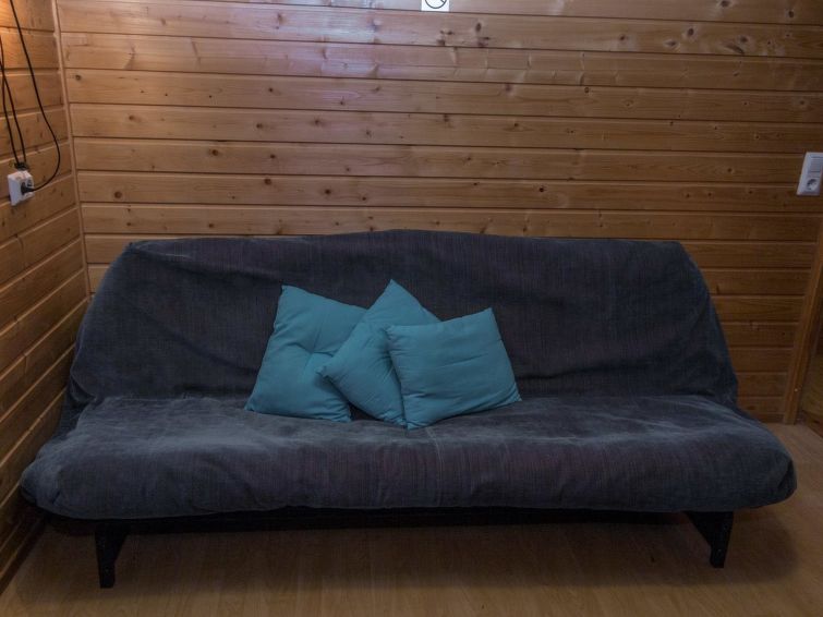 Log cabin built in 2000, kitchen, living room with spreadable sofa, bedroom with a double bed, bedroom with 2 beds, dressing room, washroom, sauna (wood-burning sauna stove), hall, glazed terrace with lake view. Air source heat pump. The cottage has charging possibility for electric car for extra fee 5€ / day. For rent Evtun Accelev 8kw charger type1 / type2, additional price 10 €.