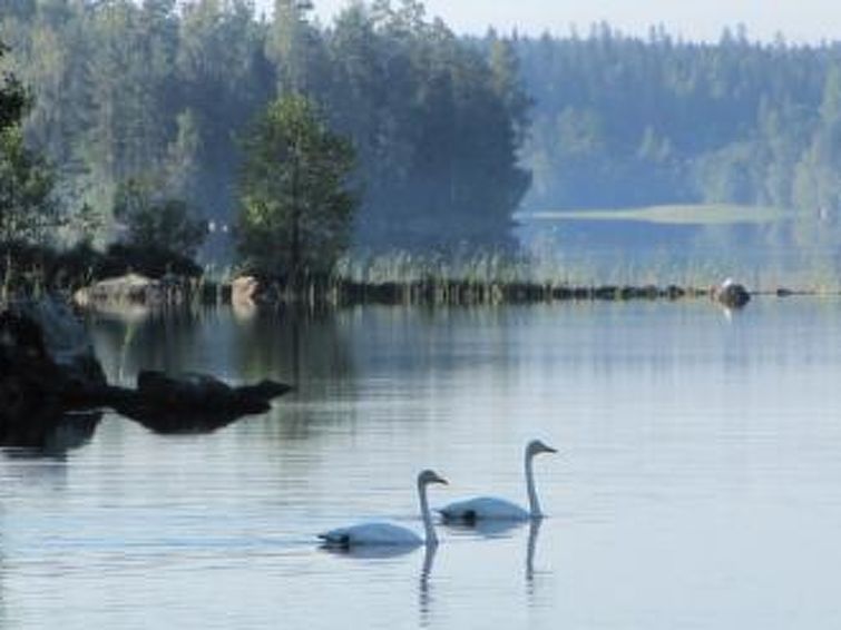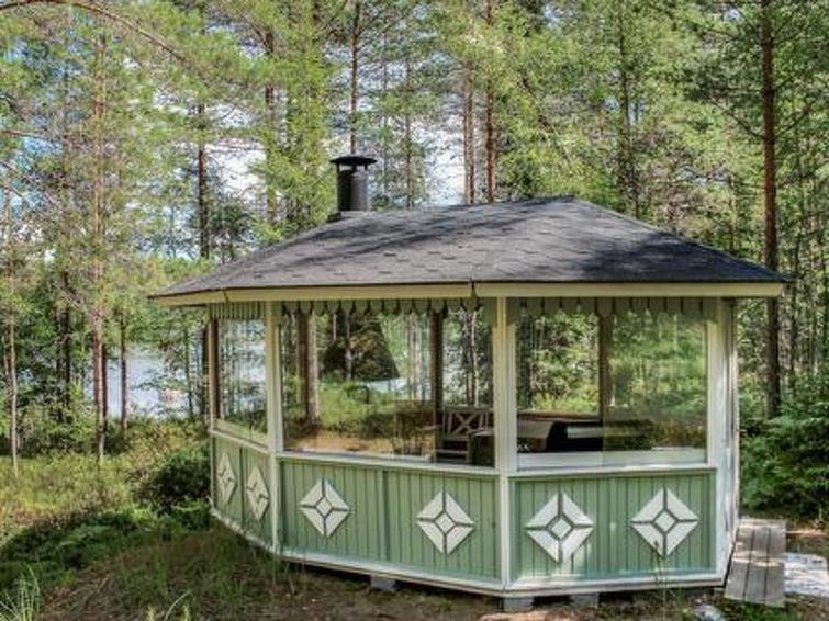 Pet fee 30 € / pet / holiday. If you have a pet with you, please book additional service "Pet fee". Upper part of plot is level, gentle slope from cottage to shore. Yard has sand, grass and forest. Summer house (with wood-burning grill) and sandbox in the garden.