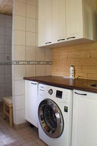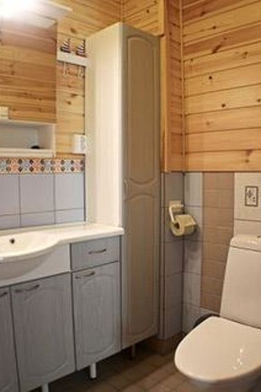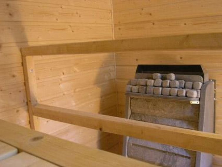 Wooden cottage 2009, living room/kitchen 2 extra beds (convertible sofa/bed), 3 bedrooms each with 2 beds, attic 2 mattresses (summer use only), dressing room, washroom (shower),washing machine, sauna (electric stove).