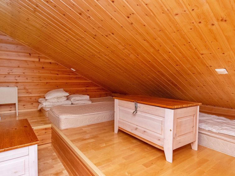 The sleeping areas are comfortably arranged: the bedroom has a double bed and the loft has space for five mattresses. Access to the terrace and loft is via the livingroom-kitchen.