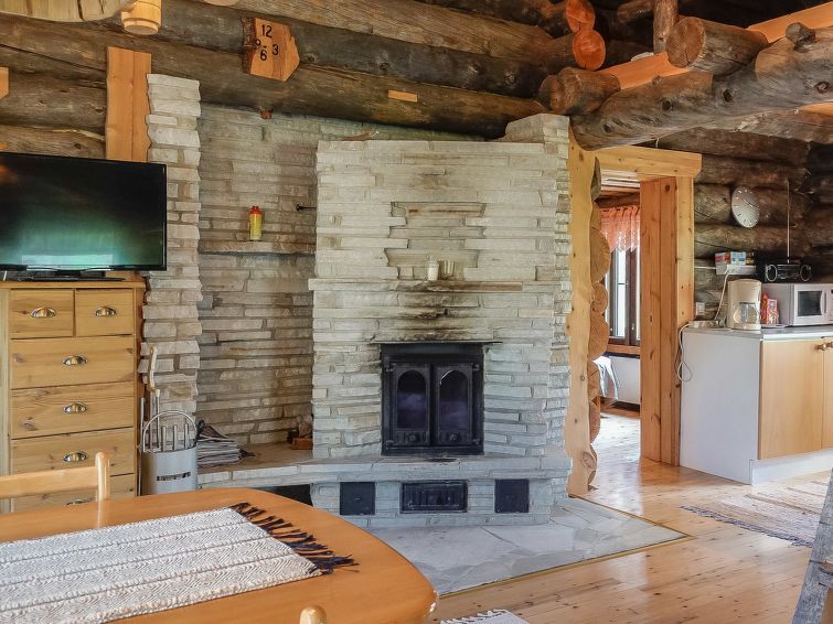 Fish smoking oven in shared use between three cottages. A reasonable amount of firewood is included in price; more firewood can be purchased from the caretaker 5 e/50 liter box. Spacious cottage on the banks of a flowing river. In the area there are 2 other cottages, this cottage is in the middle of the two other cottages. Other neighbors quite far away, quiet place, but car sounds can be heard from the road (4/E75) 200 m away.