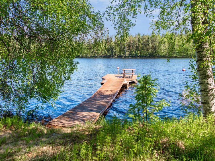 65 km northeast of Kuopio, Lake Syväri 50 m, shore and pier in common use between three apartments, the shore is sandy and deep, most suitable for adults. On the way to the shore a steep slope and stairs. Rowboat in use with a neighboring apartment (code nr. 13717).