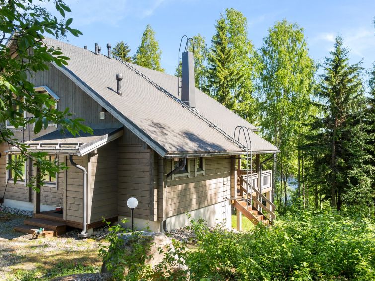 65 km northeast of Kuopio, Lake Syväri 50 m, shore and pier in common use between three apartments, the beach is sandy and deep, most suitable for adults. On the way to the shore a steep slope and stairs. Rowboat in use with a neighboring apartment (code nr. 13589).