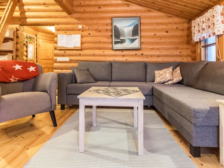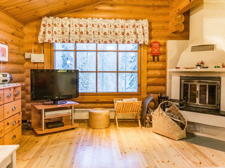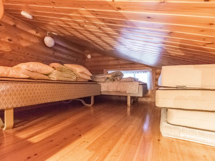 Bedroom with a double bed, living room with a sofa bed and kitchenette; sauna with adjoining dressing room, WC, attic with 3 mattresses. Cosy semi-detached house located at the lake shore, within close vicinity of the ski lifts. Ski tracks and slopes very near. Sharing the beach with the neighbours. Boat includes in price.