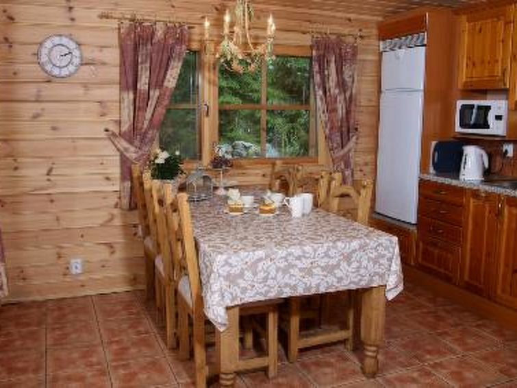 Log cabin 1981, renovated 2002, kitchen, lounge with fireplace, bedroom with bunk bed, bedroom with double bed, sauna, dressing room, washroom, open veranda. Portable charcoal BBQ grill. Coal