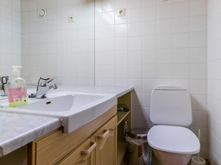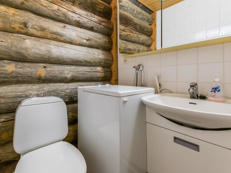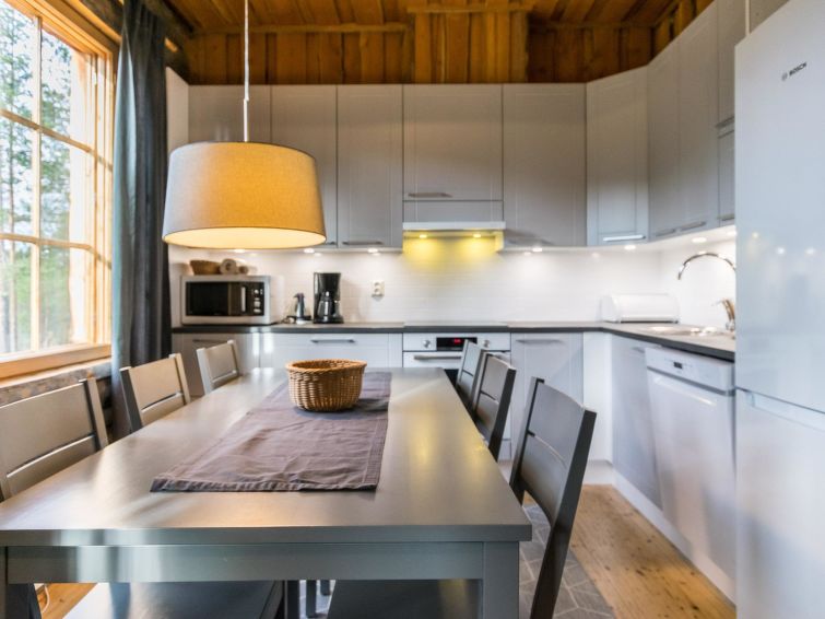 50 km north from Kemijärvi. Downstairs kitchen, living room, 2 bedrooms; one with two separate beds, another with double bed 160 cm, washroom, sauna (electric stove), toilet.