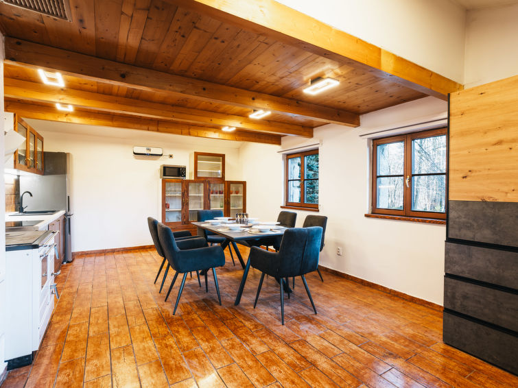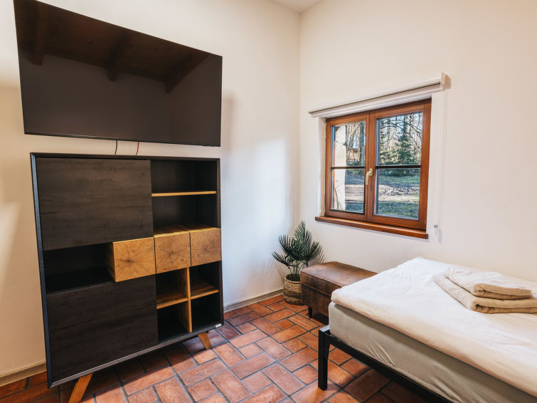 Kunějov 4 km fra Člunek: Komfortabel hus "Kunějov", frittstående. I utkanten Kunějov, 15 km fra sentrum av Jindřichův Hradec, i en roligt, solrikt posisjon, 150 m fra skogskanten, direkte ved sjøen, i det grønne. Privat: tomt 4'000 m2. Sitteplass, terrasse, grill. I anlegget: sykkelrom, sentralvarme. Parkering ved hbrukt. Daglivarehandel 4 km, restaurant 4 km, bussholdeplass "Kunějov" 400 m, togstasjon "Nová Bystřice, Senotín" 3.6 km, offentlig badeområde 100 m. Golfbane(18 hull) 10 km, turstier fra hbrukt, sykkelvei 50 m, lekeplass 500 m. Attraksjoner i nærheten: Kamenný stůl 2 km, Památník Járy Cimrmana/Kaproun 6 km, Zámek Nová Bystřice 9 km, Terezín 12 km, Vítkův Hrádek 12 km, Hrad Landštejn 15 km, Pomezí, Hrad a zámek Jindřichův Hradec 15 km, Třeboň 33 km, Telč 35 km. Velkjente skiområder: Hradiště u Nové Bystřice 5 km. Velkjente innsjøer: Kačležský, Krvavý, Klikovský rybník 4 km, Ratmírovský rybník 12 km.