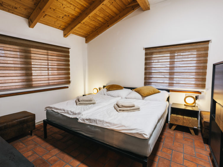5 rom bungalow 145 m2. Stue med, vedovn, spisehjørne og satelit-TV. 1 rom med 1 seng. 1 rom med 1 seng. 1 rom med, 1 dobbeltseng (180 cm). 1 rom med, 1 dobbeltseng (120 cm). Kjøkken (stekeovn, oppvaskmaskin, 4 keramiske kokeplater, brødrister, vannkoker, mikrobølgeovn, elektrisk kaffemaskin). Sep. WC, bad/dusj/WC. Terrasse. Terrassemøbler. Fasiliteter: Internett (trådløs LAN [WLAN], gratis). Vennligst merk: velegnet for familier. Røykfritt hus. 1 lite kjæledyr / liten hund tillatt.