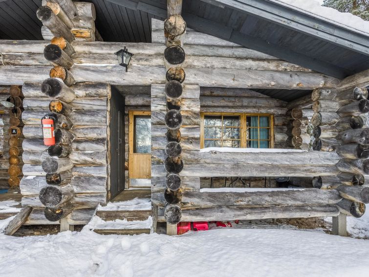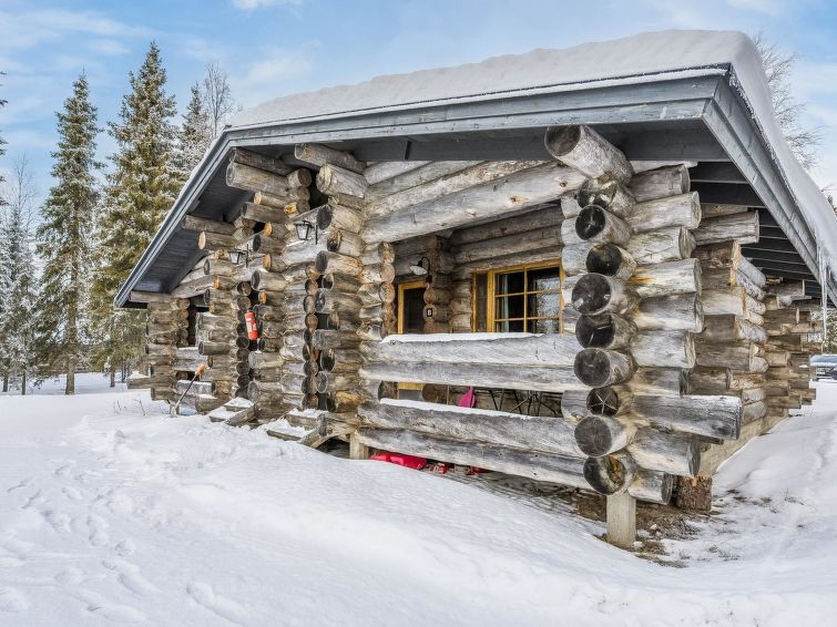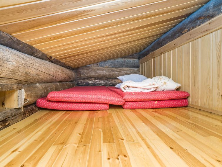 27 km to the north from Kuusamo, 9 km to Ruka, 30 m to lake Kuontijärvi, hard bottom. Half of the semi-detached log cottage, built in 1988. Bedroom with double bed, loft with 4 mattresses, kitchen/living room, shower room+toilet, sauna with electric stove. Half of the semi-detached log cottage by the lake Kuontijärvi. Accommodation for up to 4+8 persons with both sides of the cottage. Rowing boat in shared use with other half of the cottage. There are e.g. whitefish, perch and pike in the lake Kuontijärvi.