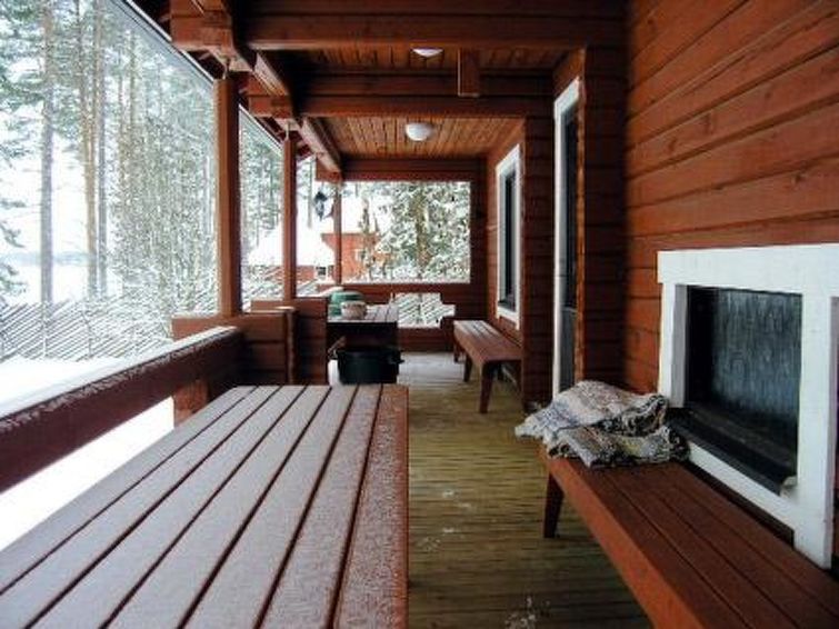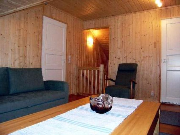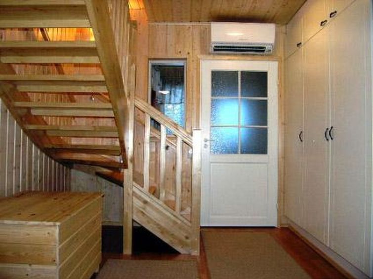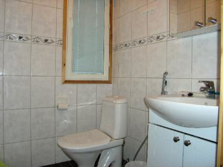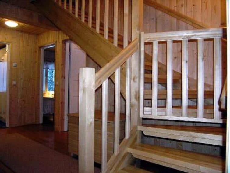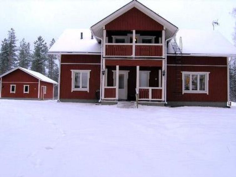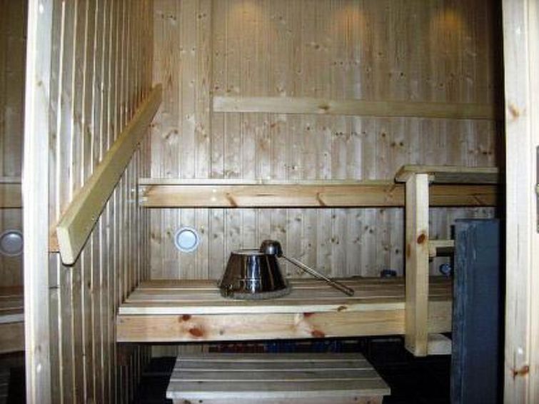 Wooden house 2007. Downstairs: living room/kitchen 1 extra bed, 2 bedrooms each with 2 beds, utility/dressing room, washroom, sauna, porch and terrace. Upstairs: hall 2 extra beds, bedroom 3 beds, bedroom 2 beds, clothes storage room, balcony.
