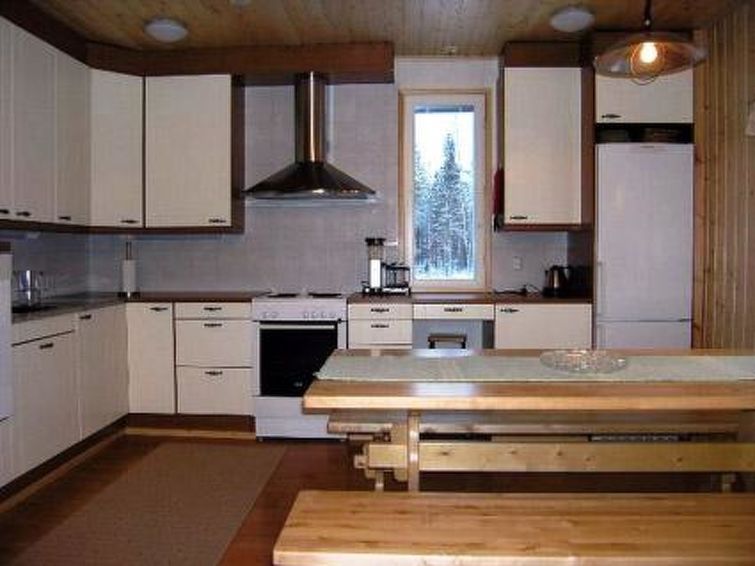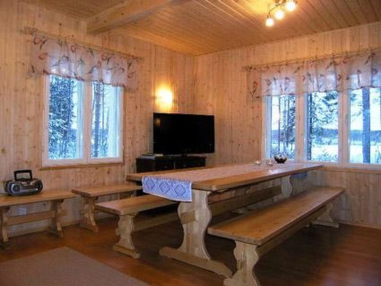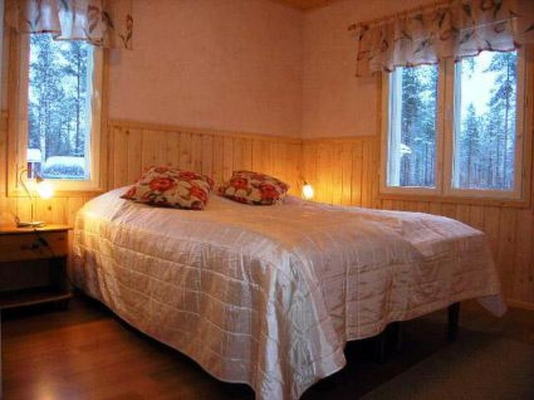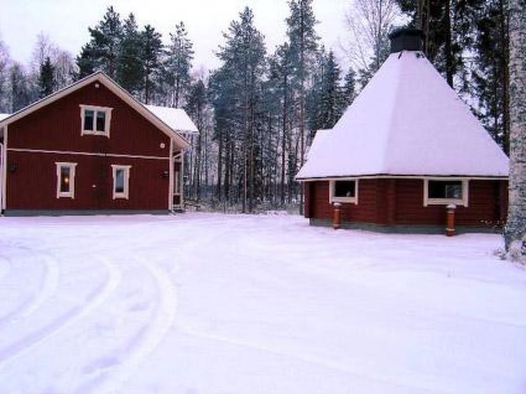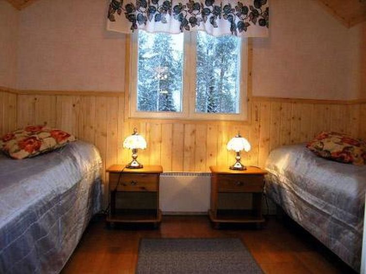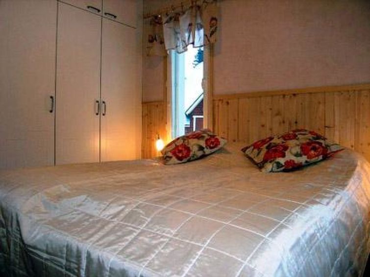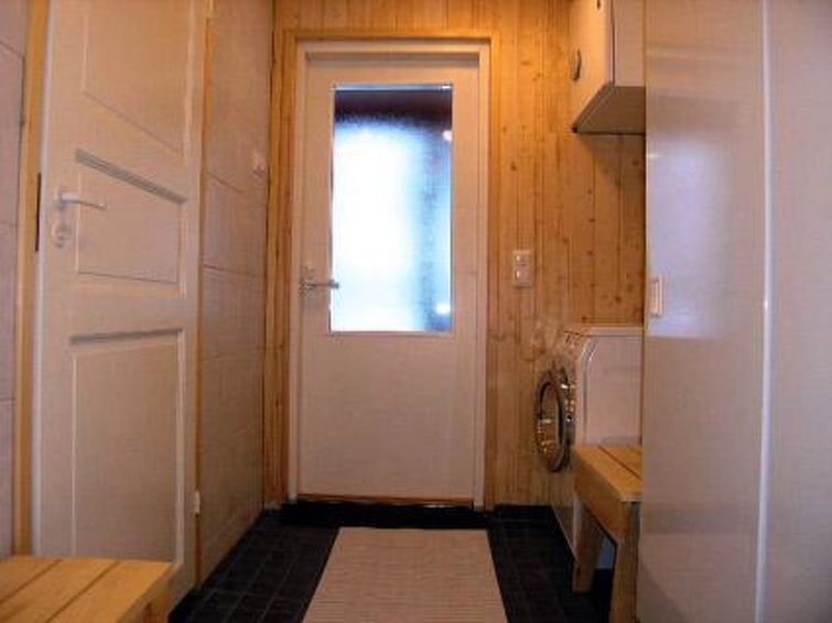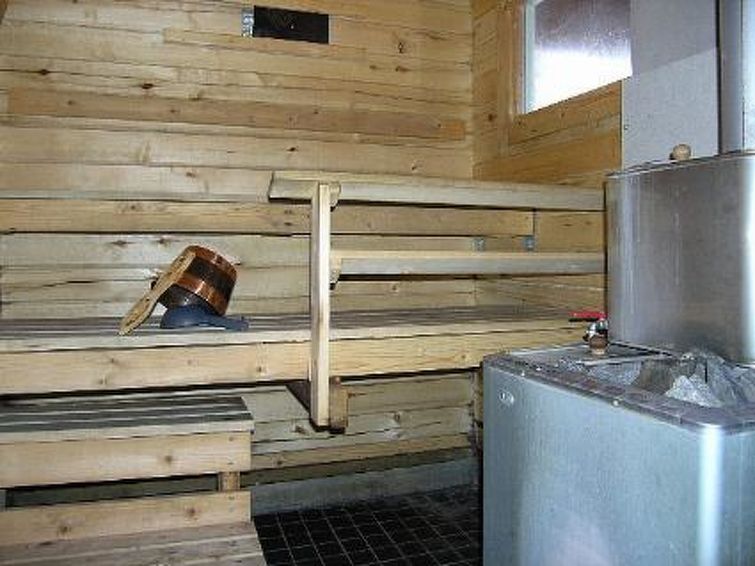 Wooden house 2007. Downstairs: living room/kitchen 1 extra bed, 2 bedrooms each with 2 beds, utility/dressing room, washroom, sauna, porch and terrace. Upstairs: hall 2 extra beds, bedroom 3 beds, bedroom 2 beds, clothes storage room, balcony.