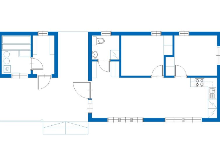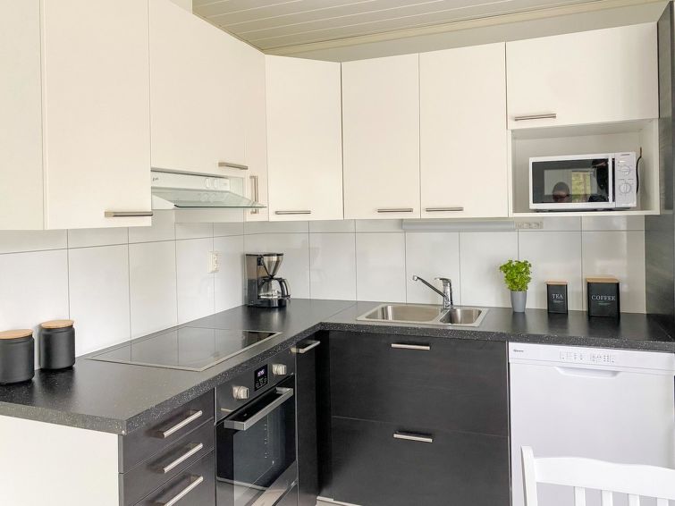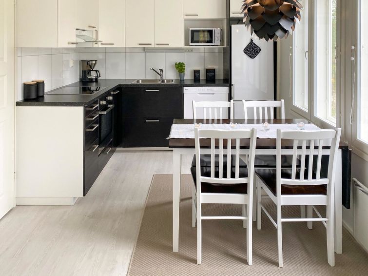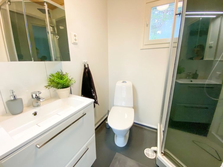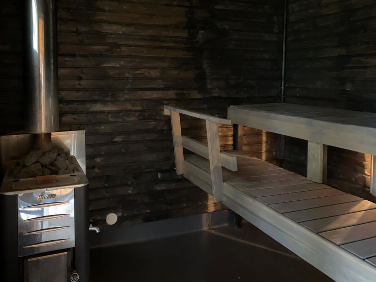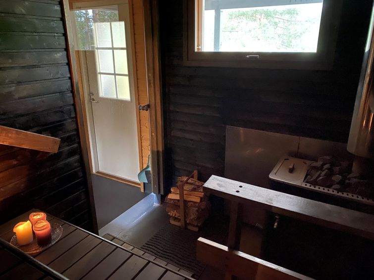 Wooden villa, built in 2016. Kitchen-living room, 2 bedrooms, each with 2 single beds, toilet and shower. Sauna department with dressing room. In the sauna there is wood-burning stove and heater tank for heating the water. There is no running water in the sauna, water has to be carried from the cottage. Entrance to sauna department only via a covered veranda.