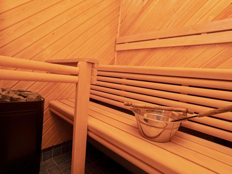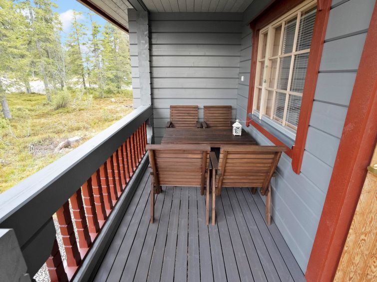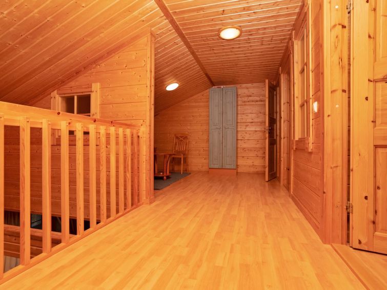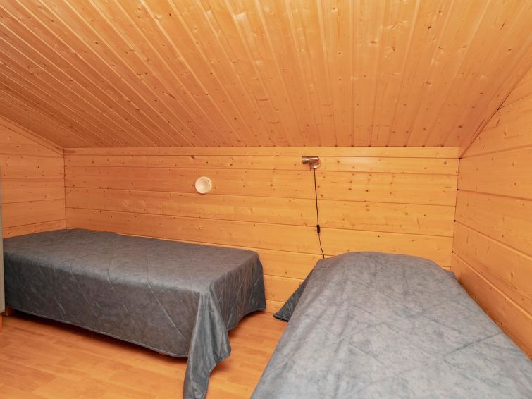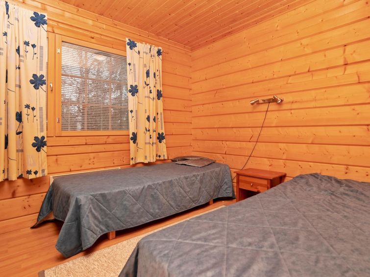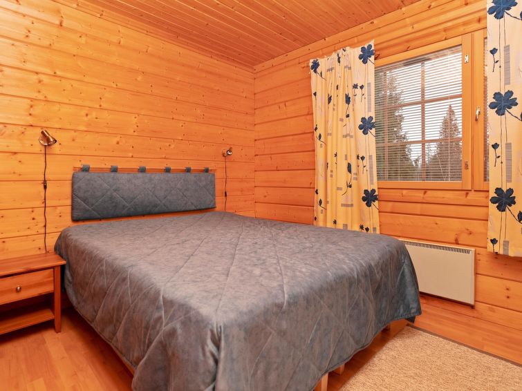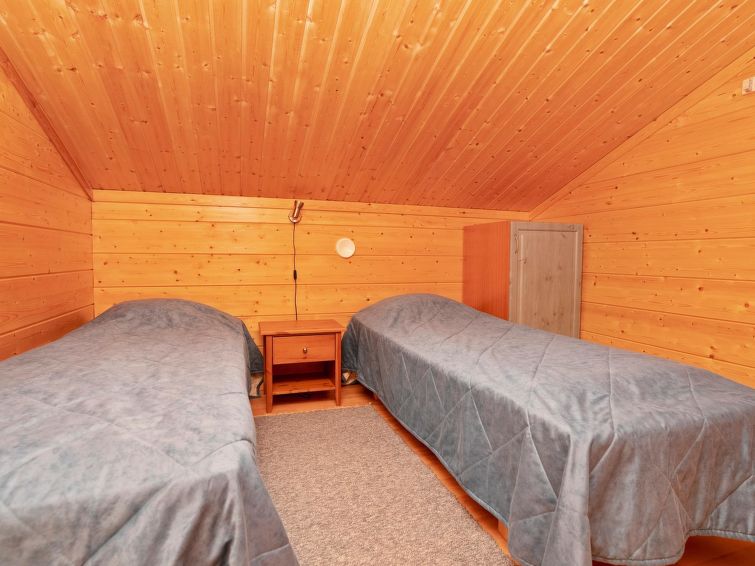 25 km north of Kuusamo, Vuosseli (Eastern Ruka) 1.5 km. Apartment in log-built semi-detached house, built in 2005, downstairs bedroom 1: double bed, bedroom 2: 2 beds, upstairs bedrooms 3-4: 2 beds in each, hall: convertible sofa for two, gentle stairs to upstairs, combined kitchen/living room, electric sauna.