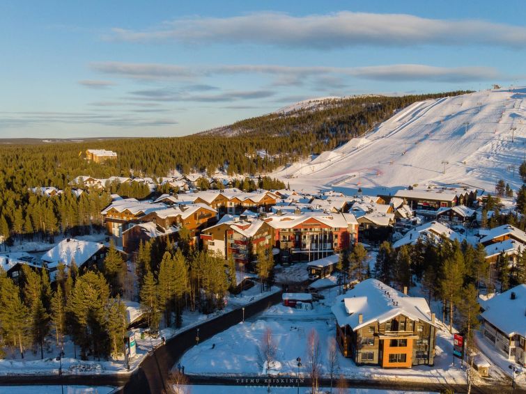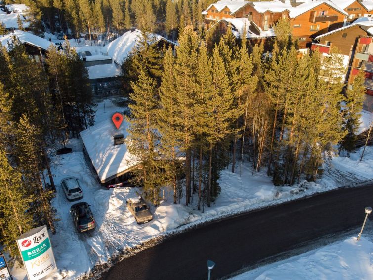 The nearest ski slope is Eturinne located in Levi center, the distance to the lift is 250 m along the walkway, 450 m along the highway. The closest hotel is the Sokos Hotel 60 m.