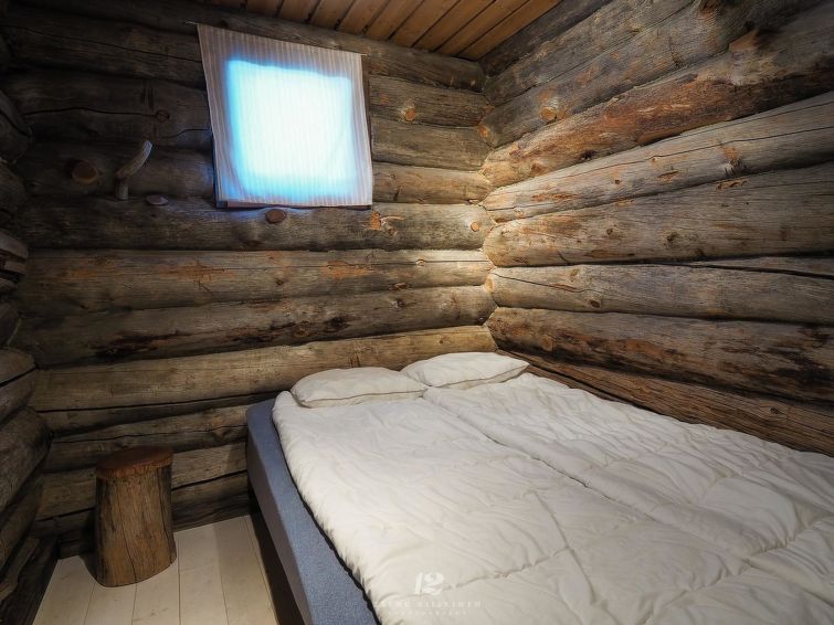 Kelo log cabin, built in 1990. The cabin has three bedrooms, two of them with a bunk bed (lower bed 160 cm, upper bed 140 cm wide), the third with a double bed (140 cm). Living room kitchen, sauna (wood sauna stove), washroom/WC and covered terrace. Traditional cabin in a small forest surrounded by newer buildings. The cabin has been renovated over the years, e.g. kitchen, sauna and washroom facilities recently renewed.