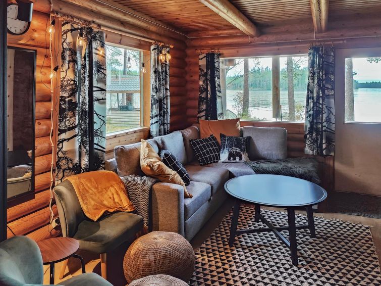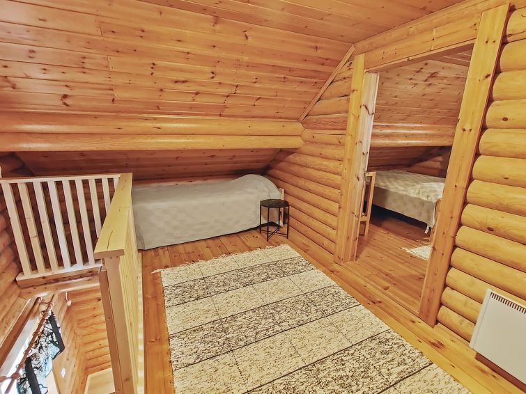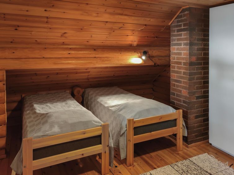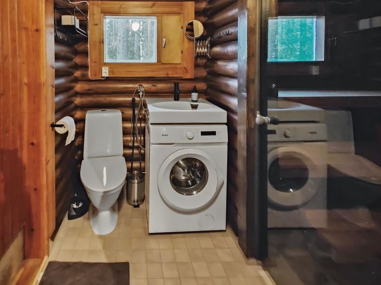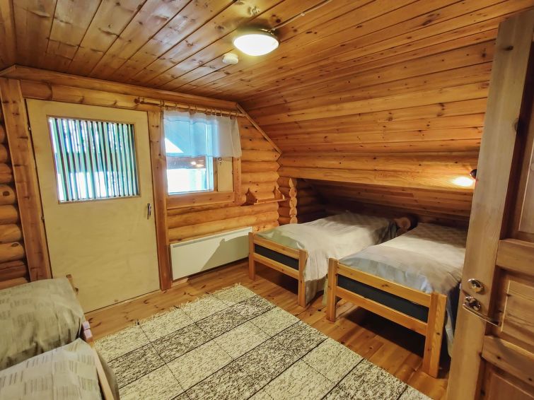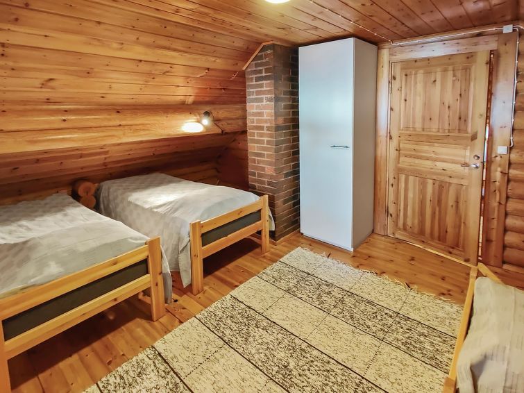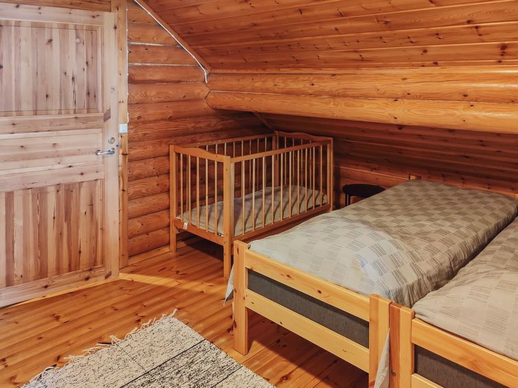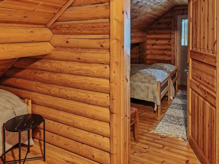Log cabin 1988, interior renovation done in 2023. Downstairs: living room/kitchen with one bed, toilet-dressing room (access both indoors and outdoors), wood-heated sauna with shower, open veranda.