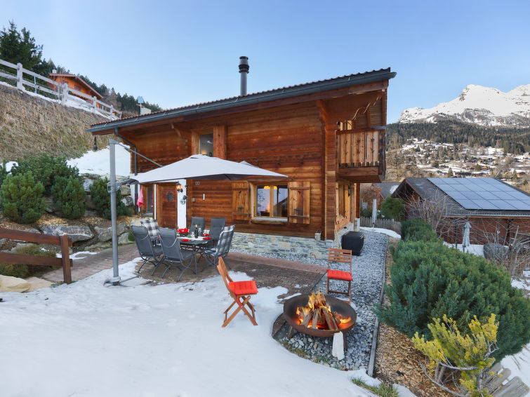 Mayens de Chamoson 4 km fra d'Ovronnaz: Not much sun in winter. Meget fin, meget luksuriøs hytte "L'Ecureuil Noir", med 2 etasjer, bygget i 2007. I området Djuet, i en blindvei, beliggenhet mot øst. Plen. Romrengjøring på forespørsel (ekstra). Bratt Tilgang med bil hele veien, untatt på vinteren 20 m. Kjettinger nødvendige på vinteren. Daglivarehandel 4 km, restaurant 1.7 km, bussholdeplass 300 m, termalbad 5 km. Tennis 2.7 km, skisportenanlegg 4.5 km, skibussholdeplass 700 m, skiskole 3.8 km, skibarnehage 3.8 km. Vennligst merk: bil anbefales.