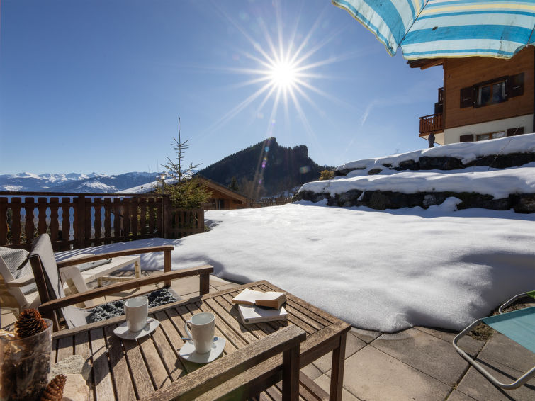 Mayens de Chamoson 3 km fra Ovronnaz: Stor hytte "L'Orchidée", med 2 etasjer, bygget i 2009. I området Parmey. Daglivarehandel 3 km, restaurant 71 m, bussholdeplass 44 m, termalbad 3.9 km. Tennis 2 km, skibakker 3.3 km, skibussholdeplass 44 m, skiskole 3 km, skibarnehage 3.3 km. Vennligst merk: bil anbefales. Gratis skibuss.
