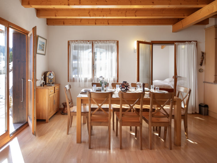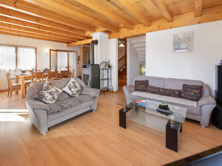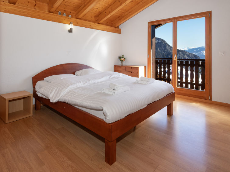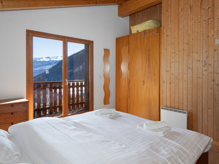 "L'Orchidée", 5 rom hytte på 2 etasjer, østvendt beliggenhet. Romlig, komfortabelt og smakfullt møbler: stue/spisestue med, kabel-TV og vedovn. Utgang til terrassen. 1 rom med, 1 dobbeltseng (1 x 160 cm, lengde 200 cm), dusj/WC. Utgang til terrassen. Åpent kjøkken (stekeovn, oppvaskmaskin, 4 keramiske kokeplater, elektrisk kaffemaskin, Internet(Nespresso), ekstra, raclettegrill (chinoise)). Utgang til terrassen. Sep. WC. øverste etasje: 1 rom med, 1 dobbeltseng (1 x 160 cm, lengde 200 cm). Utgang til balkongen, beliggenhet mot øst. 1 rom med, 1 dobbeltseng (1 x 160 cm, lengde 200 cm). Utgang til balkongen, beliggenhet mot øst. 1 rom med 2 senger (90 cm lengde 200 cm). Bad/dusj/WC. Stor terrasse, østvendt beliggenhet, plen. Terrassemøbler, liggestoler. Meget vakker panoramautsikt av fjellene og dalen. Fasiliteter: vaskemaskin, hårføner. Internett (trådløs LAN [WLAN], gratis). Parkeringsplass (overdekt, 2 Biler) ved hbrukt. Vennligst merk: røykfri bolig. Max 1 lite kjæledyr / liten hund tillatt. The owner sometimes use the fist floor.