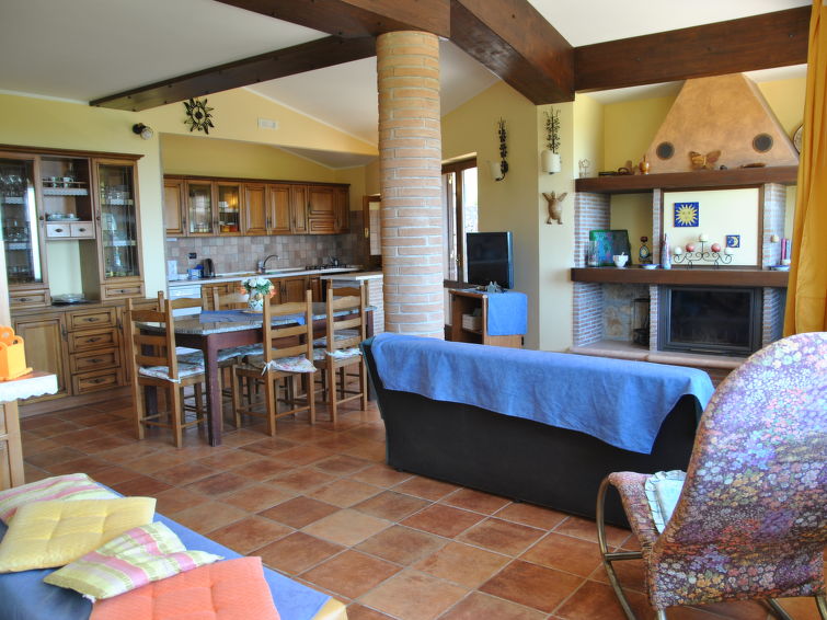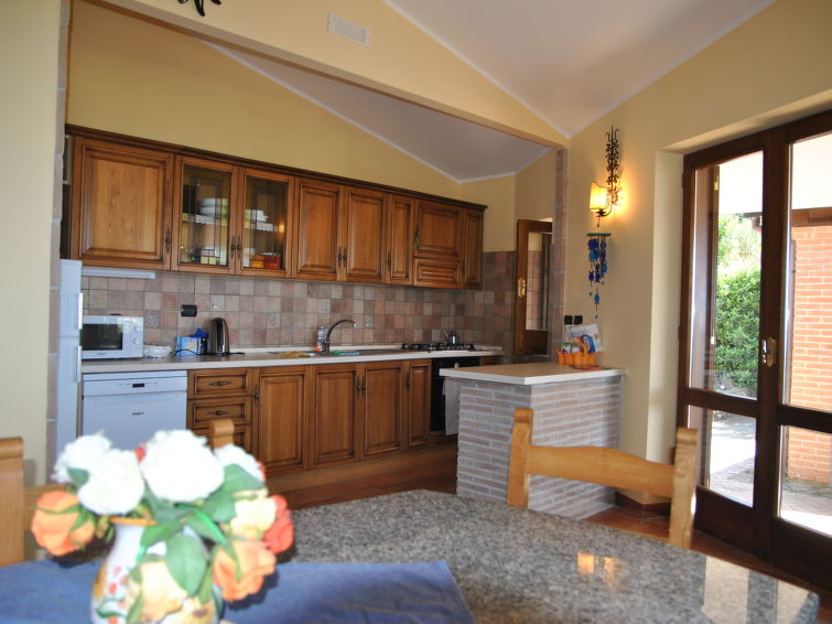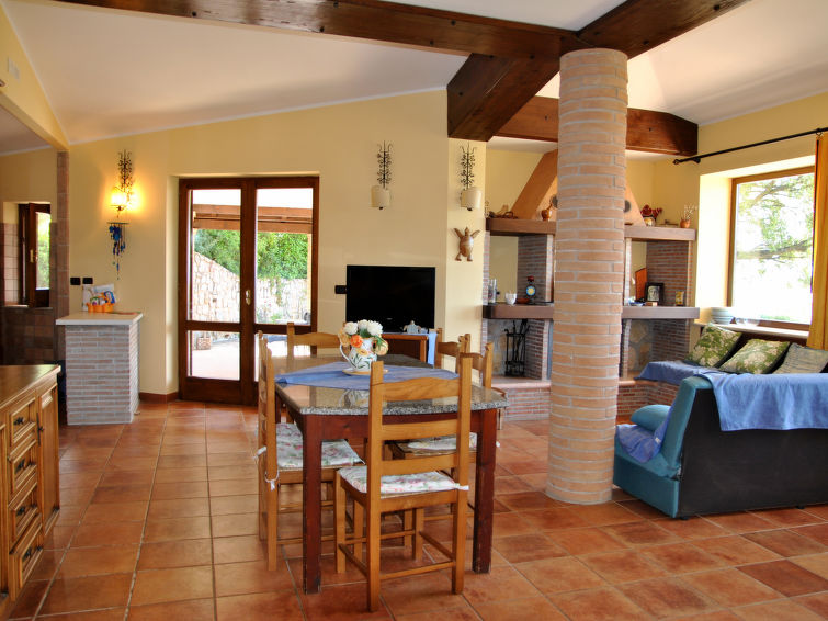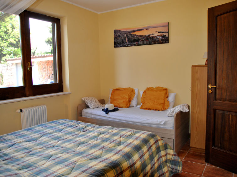 6 rom villa 195 m2 på 2 etasjer. Praktiskt og komfortabelt møbler: stue/spisestue med, 1 sovesoffa og åpen peis (kun til dekorasjon), TV (flatskjerms TV). Utgang til hagen. 1 dobblet rom. Stue/spisestue med, 1 sovesoffa, kjøkkenhjørne og TV (flatskjerms TV). Utgang til hagen. 1 dobblet rom. Utgang til hagen. Kjøkken (4 kokeplater, stekeovn, oppvaskmaskin, frys). 2 dusjer/bidéer/WC. Gassoppvarming. øverste etasje: 1 dobblet rom med, air-conditioning. 1 rom med 2 senger og air-conditioning. Dusj/bidé/WC. Fasiliteter: vaskemaskin, hårføner. Internett (trådløs LAN [WLAN]). 1 lite kjæledyr / liten hund tillatt. Dersom utleieobjektet blir bestilt for færre personer enn det som er maksimalt tillatt, vil ikke annekset stå til rådighet.