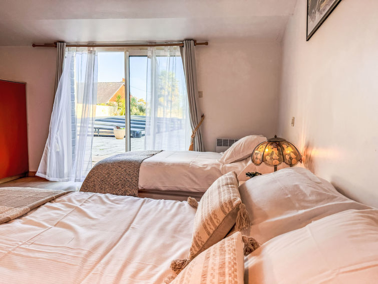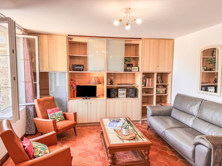 "La houle", 3 rom hus på 2 etasjer. Komfortabelt og smakfullt møbler: stue/spisestue med på med, TV (flatskjerms TV). Utgang til hagen, til terrassen. 1 stort rom med 1 seng (90 cm lengde 190 cm), 1 dobbeltseng (1 x 140 cm, lengde 190 cm). Utgang til terrassen. Åpent kjøkken (stekeovn, oppvaskmaskin, 2 keramiske kokeplater, brødrister, vannkoker, mikrobølgeovn, frys, grill, elektrisk kaffemaskin). Dusj, 2 sep. Wcer dobbel servant. El-oppvarming. øverste etasje: 1 stort rom med 1 seng (90 cm lengde 190 cm), 1 dobbeltseng (2 x 90 cm, lengde 190 cm), TV (flatskjerms TV). Stor terrasse 100 m2, beliggenhet mot sør, stor hage, plen. Terrassemøbler, grill, liggestoler. Vakker utsikt av havet. Fasiliteter: vaskemaskin, strykejern, hårføner. Internett (trådløs LAN [WLAN], gratis). Garasje på tomten. Vennligst merk: egen inngang, røykvarsler. Tilbud fra en privatperson i henhold til art. 155, IV av CGI.