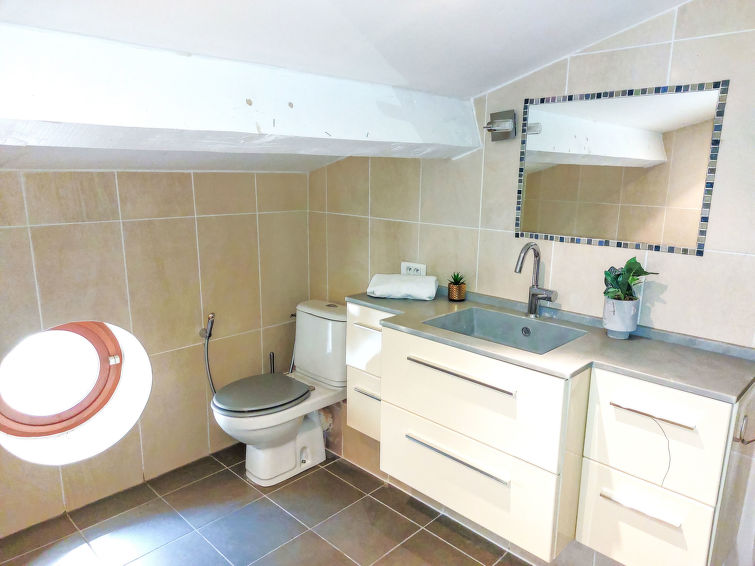 4 rom rekkehus 150 m2 på 3 etasjer. Praktiskt og vakkert møbler: stue/spisestue. Utgang til terrassen, beliggenhet mot nord. Åpent kjøkken (stekeovn, oppvaskmaskin, 3 induksjonskomfyr, frys). I underetasje: 1 rom med, 1 dobbeltseng (1 x 140 cm, lengde 190 cm). Utgang til terrassen, til sitteplass i hagen. Dusj/WC. øverste etasje: galleri med, 1 dobbel sovesoffa (1 x 140 cm, lengde 190 cm). 1 rom med, 1 dobbeltseng (1 x 140 cm, lengde 190 cm). 1 rom med 2 senger (80 cm lengde 190 cm). Dusj/WC. El-oppvarming. 2 terrasser, beliggenhet mot nord, sitteplass i hagen 50 m2. Terrassemøbler, grill (flyttbar). Vakker utsikt av Lagune. Fasiliteter: vaskemaskin. Internett (trådløs LAN [WLAN], ekstra). Vennligst merk: røykvarsler.
