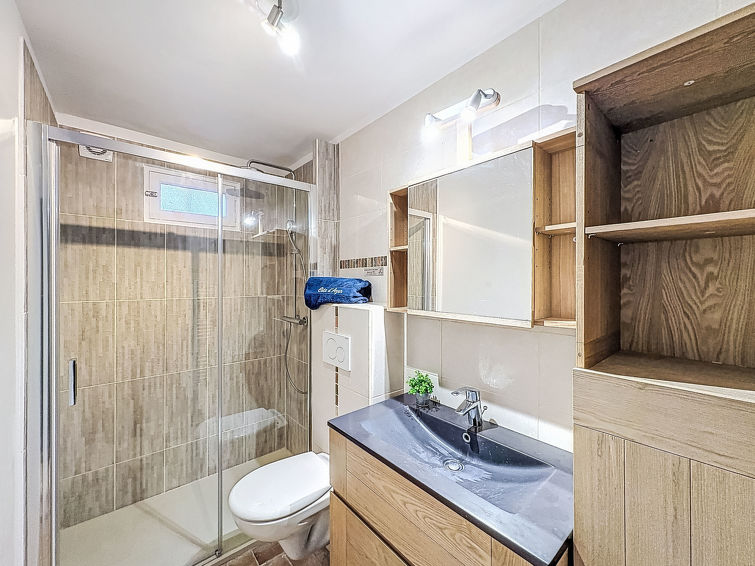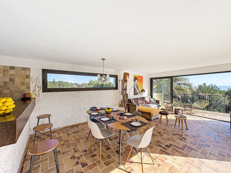 4 rom villa 140 m2 på 2 etasjer. Vakkert møbler: stue/spisestue med, TV (flatskjerms TV). Utgang til terrassen. 1 rom med, 1 dobbeltseng (160 cm, lengde 200 cm), bad, dobbel servant, med hjørnebadekar og vifte. Utgang til terrassen. 1 rom med, 1 dobbeltseng (140 cm, lengde 190 cm), dusj og vifte. Utgang til terrassen. Åpent kjøkken (stekeovn, oppvaskmaskin, 4 keramiske kokeplater, brødrister, vannkoker, mikrobølgeovn, frys, elektrisk kaffemaskin). Sep. WC. I underetasje: 1 stort rom med, 1 x 2 køysenger (80 cm, lengde 190 cm), vifte. Utgang til badebassenget. Dusj/WC. El-oppvarming. Terrasse. Terrassemøbler, liggestoler (4). Vakker utsikt av havet og hagen. Fasiliteter: vaskemaskin, strykejern, hårføner. Internett (trådløs LAN [WLAN], gratis). Parkeringsplass. Vennligst merk: ikke egnet for små barn. Bare TV FR. Røykvarsler. 83107000761VI