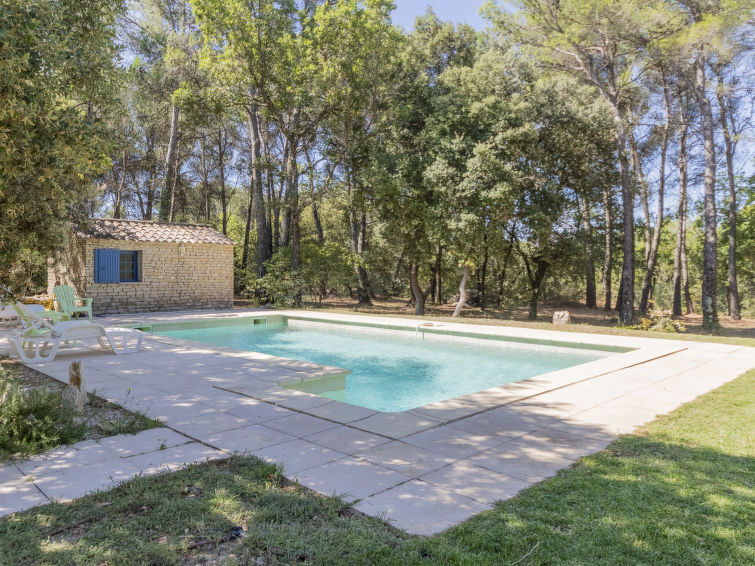 Fin hus "La Pinède", omgitt av trær. 3 km fra sentrum av Pernes-les-Fontaines, 10 km fra sentrum av Carpentras, 30 km fra sentrum av Avignon, i en avskildt posisjon. Privat: uberørt tomt 28'000 m2 (inngjerdet) med trær, svømmebasseng (9 x 4 m, dybde 140 cm, Sesongåpent: 01.Jan. - 31.Des.) med alarm. Underholdning av bassenget av eieren/gartneren. Tilgang med bil hele veien (150 m naturvei). Parkering (for 2 biler) på tomten. Butikk 3 km.