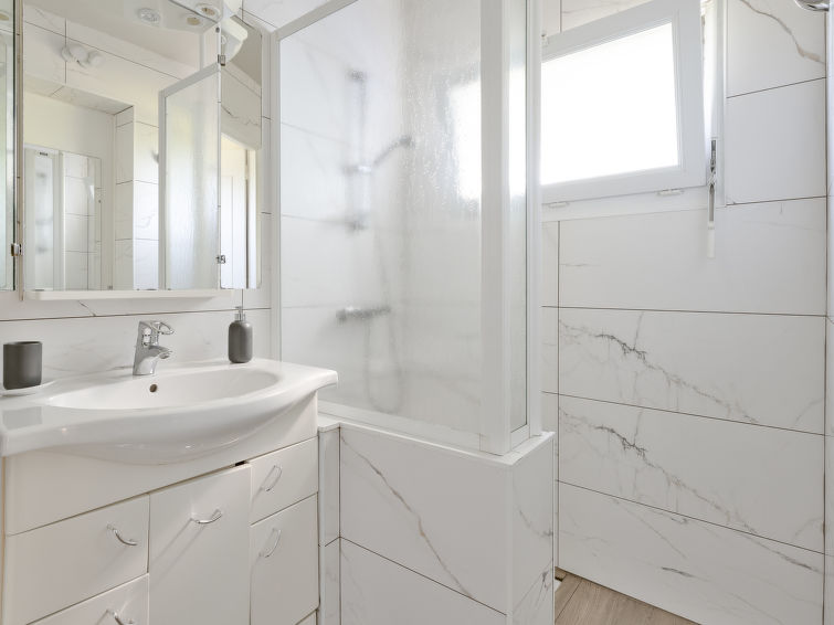 Saint Lunaire 2 km fra Dinard: Fin enmannsbolig "La Roche Blanche". I området La Fourberie, i en roligt posisjon, 800 m fra sjøen, 800 m fra stranden, i det grønne, beliggenhet mot sør. Privat: velholdt hage m2 1'000 ha (inngjerdet) med plen og trær, privat garasje. Butikk 2.2 km, daglivarehandel 1.2 km, supermarked 1.2 km, kjøpesenter 4.2 km, restaurant 800 m, bar 1.3 km, bakeri 1.3 km, café 1.3 km, sykkelutleie 2.2 km, togstasjon "SNCF de Saint-Malo" 14 km, ferje "Saint-Malo" 13 km, sandstrand "La Fourberie" 800 m, innendørs pool 2.8 km, termalbad "Thalasso de Dinard" 1.7 km. Sporthavn 2.6 km, golfbane(18 hull) 5 km, seileskole 1.5 km, tennisklubb 2.7 km, minigolf 1.5 km, rideskole 1 km, idrettsenter 1.7 km. Attraksjoner i nærheten: Saint Malo et ses remparts 12 km, Le Grand Aquarium de Saint-Malo 8.4 km, Dinan cité médiévale 22 km, Cancale et ses huîtres 24 km, Cap Fréhel et Fort la Latte 34.8 km, Le Mont Saint-Michel 59 km. Vennligst merk: velegnet for barnefamilier. Nøkkelleveringen skjer i Interhome i Dinard, 3 km.