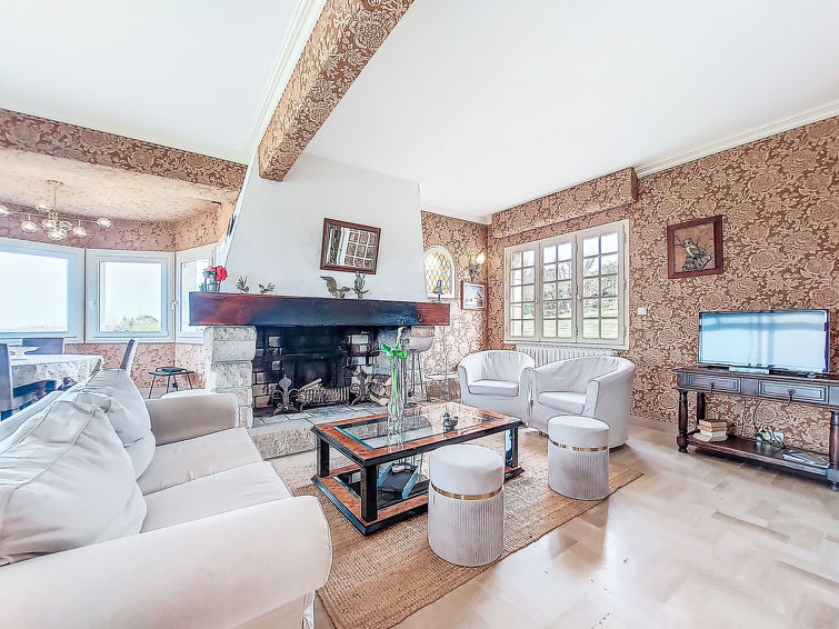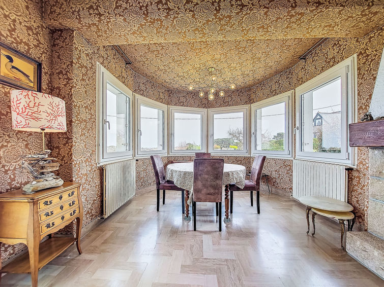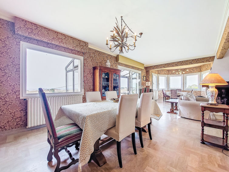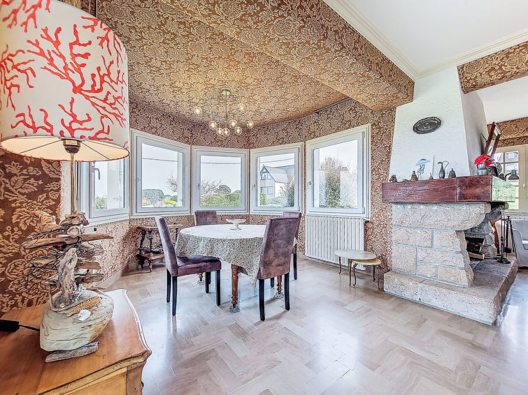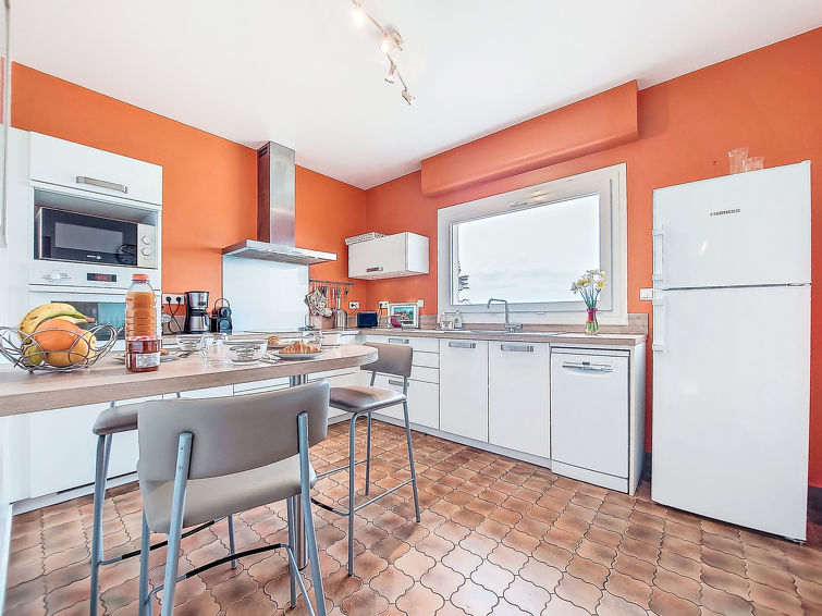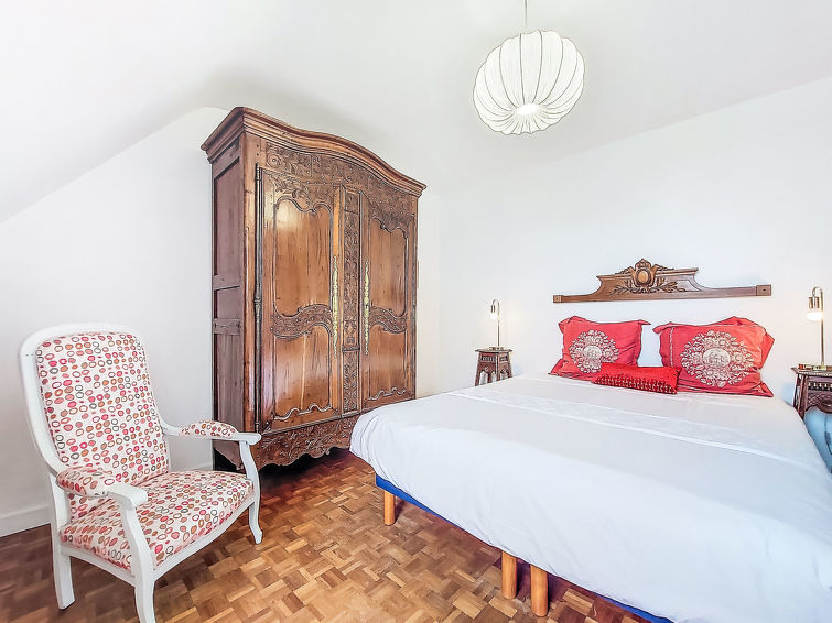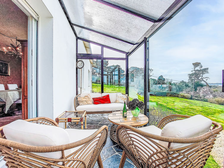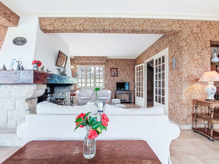 "La Rotonde (PPB102)", 6 rom hus 200 m2 på 2 etasjer. Vakkert og koseligt møbler: stue/spisestue med på med, åpen peis, spisebord og satelit-TV. Utgang til verandraen. 1 rom med, 1 dobbeltseng (140 cm). Kjøkken (stekeovn, oppvaskmaskin, 4 keramiske kokeplater, brødrister, vannkoker, mikrobølgeovn, frys, elektrisk kaffemaskin) med liten spisebord. Bad, sep. WC. øverste etasje: 1 rom med skråtak med, 1 dobbeltseng (160 cm, lengde 190 cm). 1 rom med skråtak med, 1 dobbeltseng (140 cm). 1 rom med skråtak med 1 seng. 1 rom med skråtak med 1 seng (120 cm). Dusj/WC. Oljeoppvarming. Terrasse 16 m2, terrasse 12 m2. Terrassemøbler, grill (flyttbar), liggestoler (8). Hærlig utsikt av havet. Fasiliteter: vaskemaskin, høy barnestol barneseng, hårføner. Internett (trådløs LAN [WLAN], gratis). Vennligst merk: røykfritt hus. Røykvarsler.