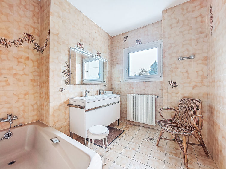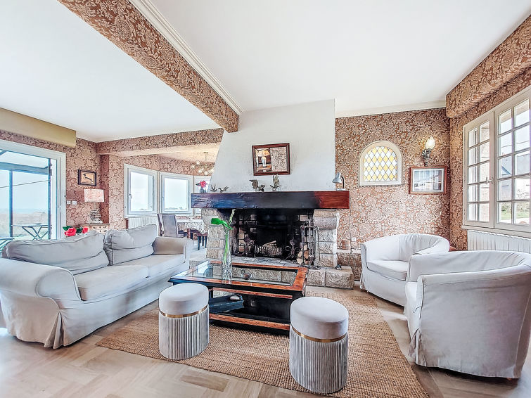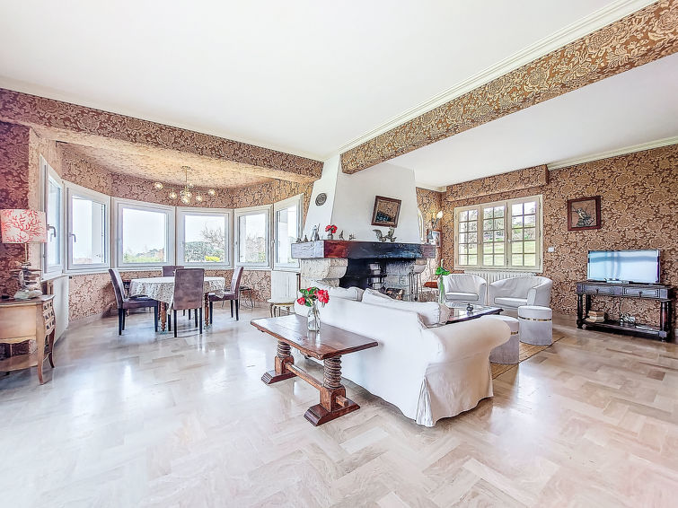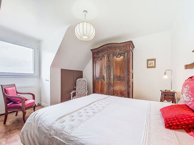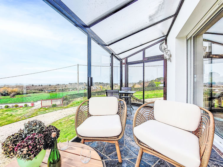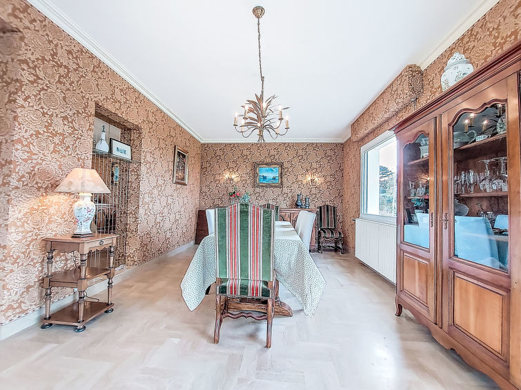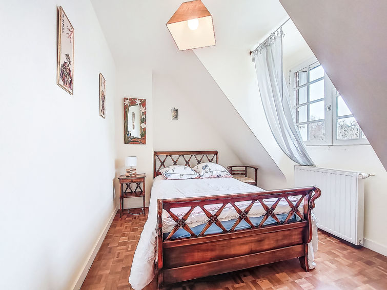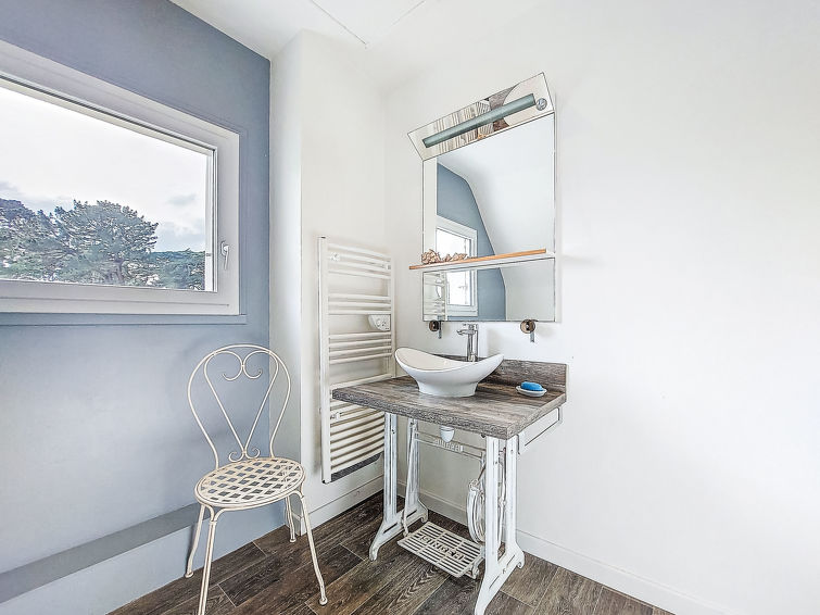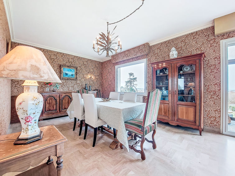 "La Rotonde (PPB102)", 6 rom hus 200 m2 på 2 etasjer. Vakkert og koseligt møbler: stue/spisestue med på med, åpen peis, spisebord og satelit-TV. Utgang til verandraen. 1 rom med, 1 dobbeltseng (140 cm). Kjøkken (stekeovn, oppvaskmaskin, 4 keramiske kokeplater, brødrister, vannkoker, mikrobølgeovn, frys, elektrisk kaffemaskin) med liten spisebord. Bad, sep. WC. øverste etasje: 1 rom med skråtak med, 1 dobbeltseng (160 cm, lengde 190 cm). 1 rom med skråtak med, 1 dobbeltseng (140 cm). 1 rom med skråtak med 1 seng. 1 rom med skråtak med 1 seng (120 cm). Dusj/WC. Oljeoppvarming. Terrasse 16 m2, terrasse 12 m2. Terrassemøbler, grill (flyttbar), liggestoler (8). Hærlig utsikt av havet. Fasiliteter: vaskemaskin, høy barnestol barneseng, hårføner. Internett (trådløs LAN [WLAN], gratis). Vennligst merk: røykfritt hus. Røykvarsler.