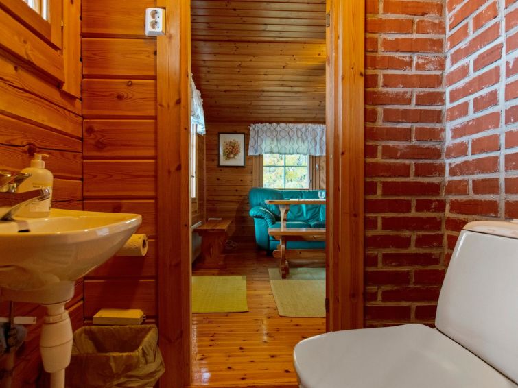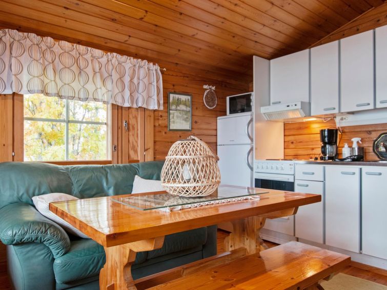 70 km east of Kuopio. Lake Vihtajärvi 20 m (length 4 km, breadth 1 km), shallow water, firm sanded clay bottom. Pier, own boat. Log cabin 1993, living room/kitchen, 2 bedrooms with 2 beds in each, dressing room, sauna, open veranda.