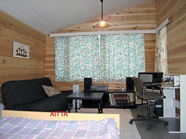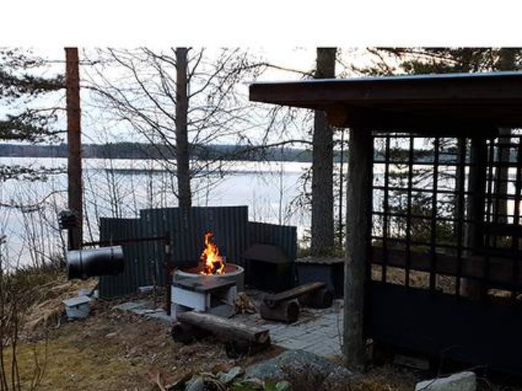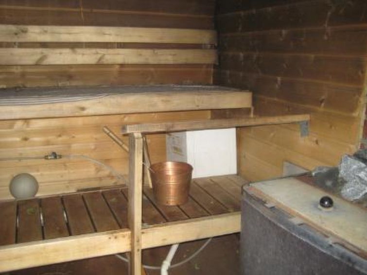 Lakeshore sauna (25 m²), running cold water (drinkable) in the summer, dressing room, room with fireplace and open porch. Room with fireplace has draining board, electric cooker, fridge, TV, CD/radio and convertible sofa/double bed.