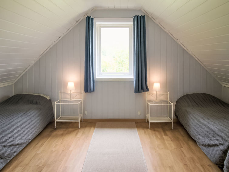 "Laksevågen (FJH614)", 3 rom hus 72 m2 på 2 etasjer. Lys, renovert i 2015, koseligt møbler: stue/spisestue med, vedovn, spisebord, TV og CD-spiller. Kjøkken (stekeovn, oppvaskmaskin, 4 keramiske kokeplater, brødrister, vannkoker, mikrobølgeovn, frys, elektrisk kaffemaskin) med, spisehjørne. Dusj/WC. øverste etasje: 1 rom med skråtak med 3 senger (75 cm lengde 200 cm). 1 rom med skråtak med 2 senger (75 cm lengde 200 cm). Varmluftsoppvarming. Tregulv. Vakker utsikt av Bjørnafjord. Fasiliteter: vaskemaskin, barneseng. Vennligst merk: røykfritt hus. Røykvarsler, brannslukkningsapparat. 924531169
